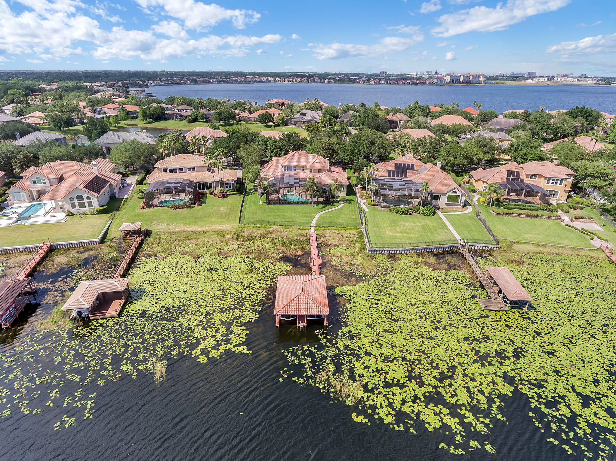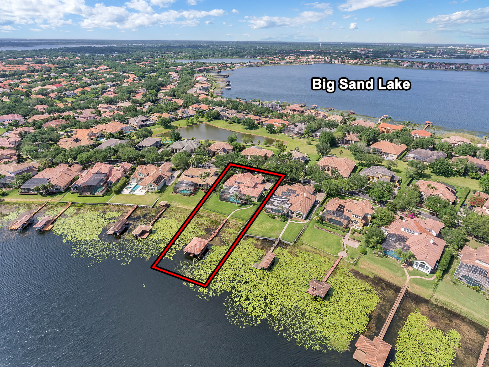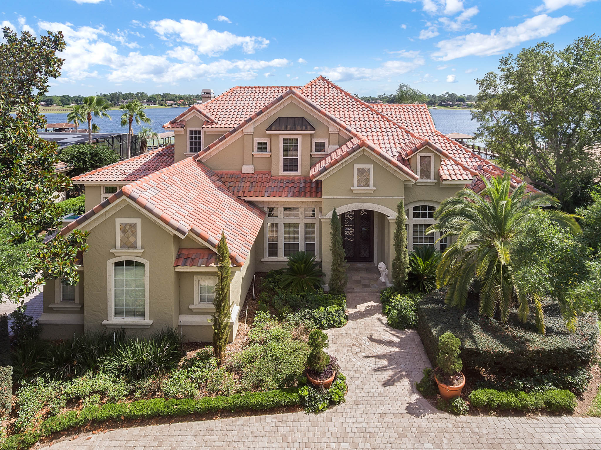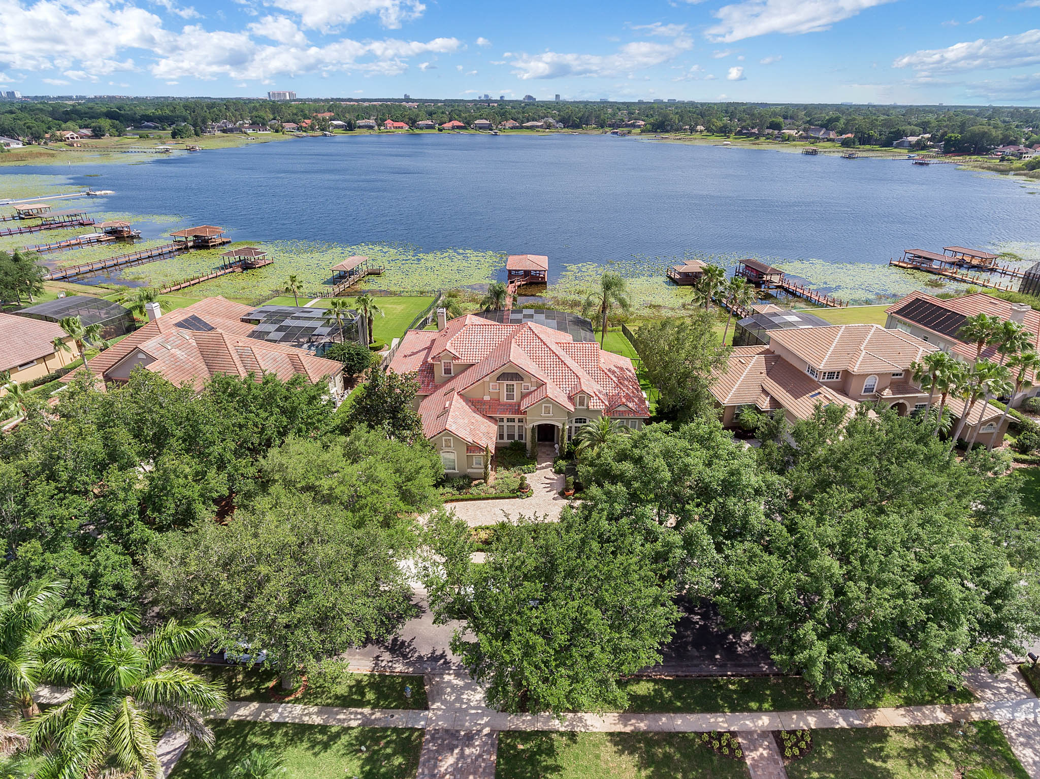 SPECTACULAR LAKEFRONT HOME IN 24 HR. GATED AND GUARDED COMMUNITY. REMODELED with neutral colors. LARGE (27X16) STATE OF THE ART THEATER ROOM COST $150,000. Total Sq. Ft. 8,162 – 6,346 heated sq. ft. 6th bedroom can be INLAW SUITE with separate full bath. Bonus Room / Playroom step down. As you enter, enjoy the *MAGNIFICENT LAKEVIEW, ARCHITECTURAL DESIGNS, LOTS OF DOUBLE MOLDING, NICHES, FIREPLACE, SECURITY SYSTEM, FRONT AND BACK CAMERAS. *EXOTIC WOOD FLOORS, TRAVERTINE FLOORING, Bedroom/Exercise Room with Cork Flooring. EXTRA LARGE MASTER BEDROOM with sitting area and LAKEVIEW. 19x8 Closet with organizer. HUGE MASTER BATH with His and Hers Vanity, granite, jacuzzi, and dressing area. *KITCHEN UPDATED with WIDER QUARTZ COUNTER TOP, Custom BUSBY 42” cabinets, built in double oven and microwave, study or computer area. PARADISE BACK YARD WITH UPDATED LANDSCAPING VARIOUS FLOWERS. LARGE POOL & HEATED SPA (SALT SYSTEM ADDED TO POOL surrounded by COVERED PORCH with Brick Pavers, UPDATED OUTDOOR KITCHEN WITH STAINLESS STEEL GRILL. 3 NEW AIR CONDITIONERS. CENTRAL VAC SYSTEM. 3 Car Side Entry Garage, Brick Paver Circular Drive. DOUBLE SLIP BOAT DOCK WITH MATCHING TILE ROOF. Estates at Phillips Landing – Close to “Restaurant Row,” Trader Joes, Whole Foods, 5-10 min. to Malls and many shops, schools and hospital. 20-25 min. to International Airport, Disney World and EPCOT. Well established Estates at Phillips Landing, Dr. Phillips Area.