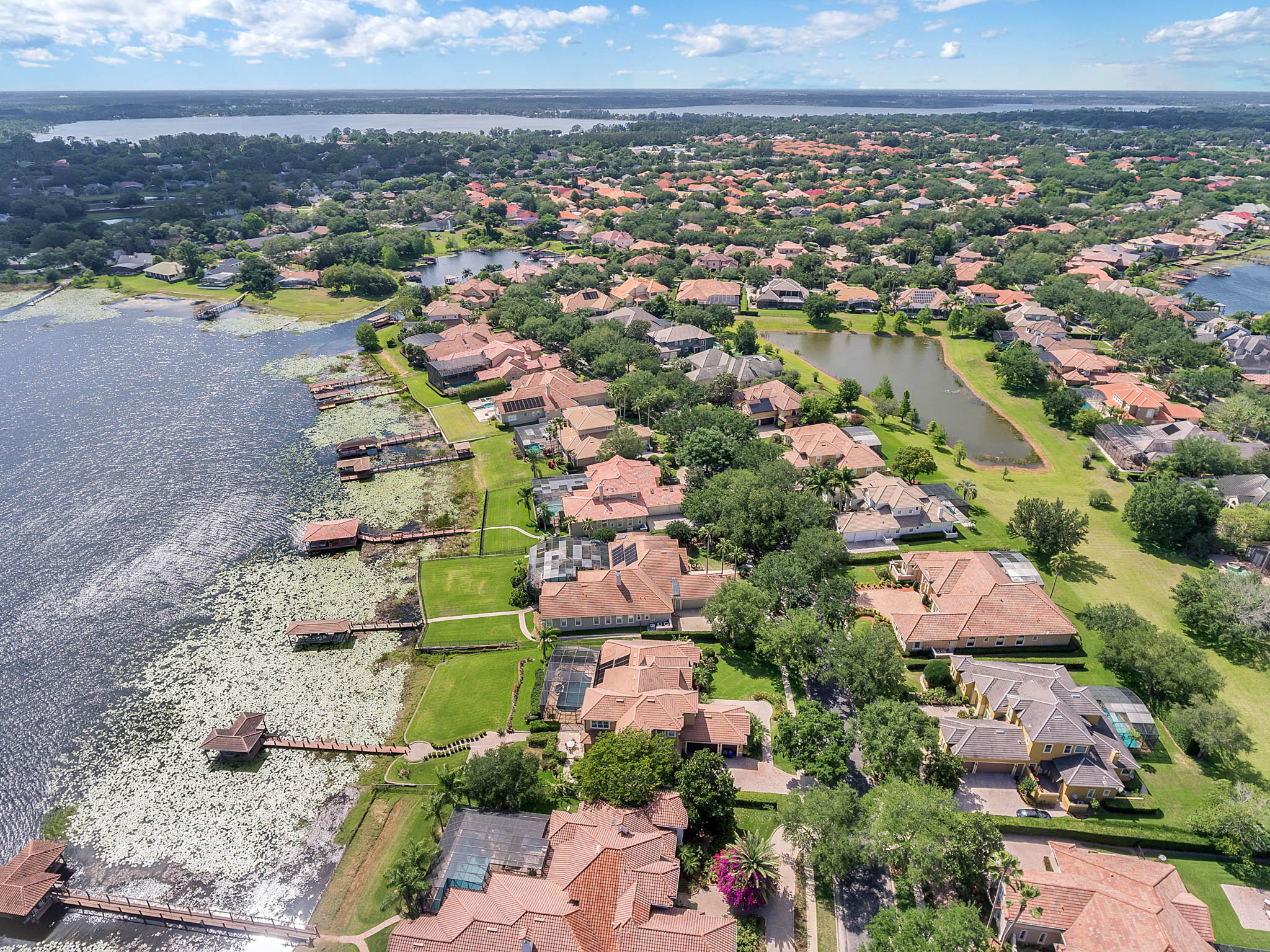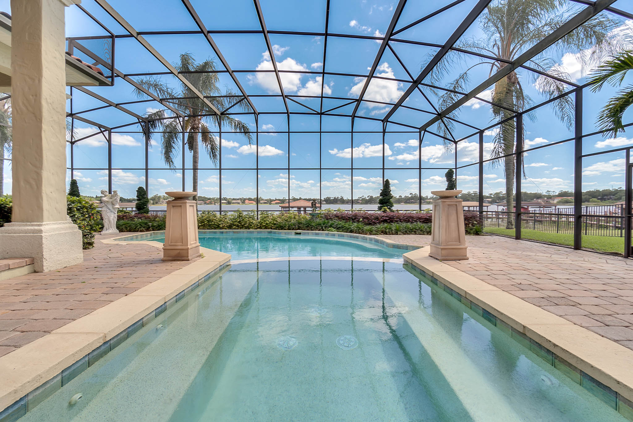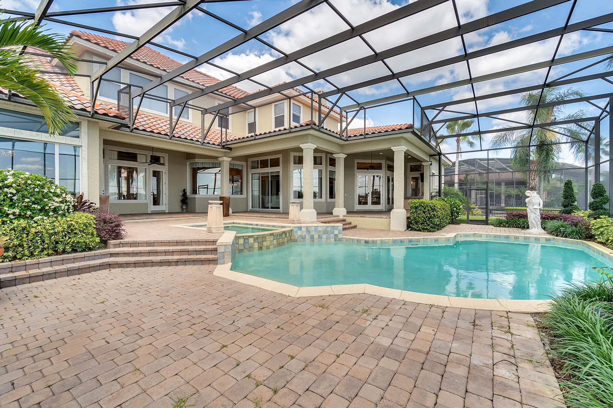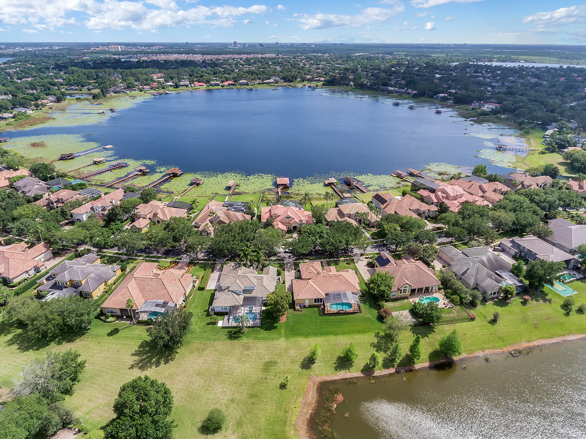 SPECTACULAR LAKEFRONT HOME IN 24 HR. GATED AND GUARDED COMMUNITY. REMODELED with neutral colors. LARGE (27X16) STATE OF THE ART THEATER ROOM COST $150,000. Total Sq. Ft. 8,162 – 6,346 heated sq. ft. 6th bedroom can be INLAW SUITE with separate full bath. Bonus Room / Playroom step down. As you enter, enjoy the *MAGNIFICENT LAKEVIEW, ARCHITECTURAL DESIGNS, LOTS OF DOUBLE MOLDING, NICHES, FIREPLACE, SECURITY SYSTEM, FRONT AND BACK CAMERAS. *EXOTIC WOOD FLOORS, TRAVERTINE FLOORING, Bedroom/Exercise Room with Cork Flooring. EXTRA LARGE MASTER BEDROOM with sitting area and LAKEVIEW. 19x8 Closet with organizer. HUGE MASTER BATH with His and Hers Vanity, granite, jacuzzi, and dressing area. *KITCHEN UPDATED with WIDER QUARTZ COUNTER TOP, Custom BUSBY 42” cabinets, built in double oven and microwave, study or computer area. PARADISE BACK YARD WITH UPDATED LANDSCAPING VARIOUS FLOWERS. LARGE POOL & HEATED SPA (SALT SYSTEM ADDED TO POOL surrounded by COVERED PORCH with Brick Pavers, UPDATED OUTDOOR KITCHEN WITH STAINLESS STEEL GRILL. 3 NEW AIR CONDITIONERS. CENTRAL VAC SYSTEM. 3 Car Side Entry Garage, Brick Paver Circular Drive. DOUBLE SLIP BOAT DOCK WITH MATCHING TILE ROOF. Estates at Phillips Landing – Close to “Restaurant Row,” Trader Joes, Whole Foods, 5-10 min. to Malls and many shops, schools and hospital. 20-25 min. to International Airport, Disney World and EPCOT. Well established Estates at Phillips Landing, Dr. Phillips Area.