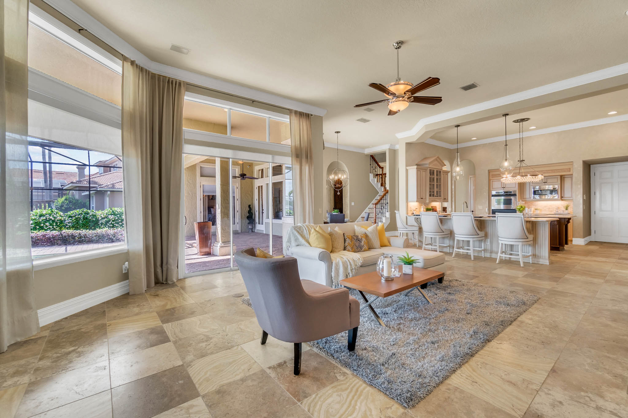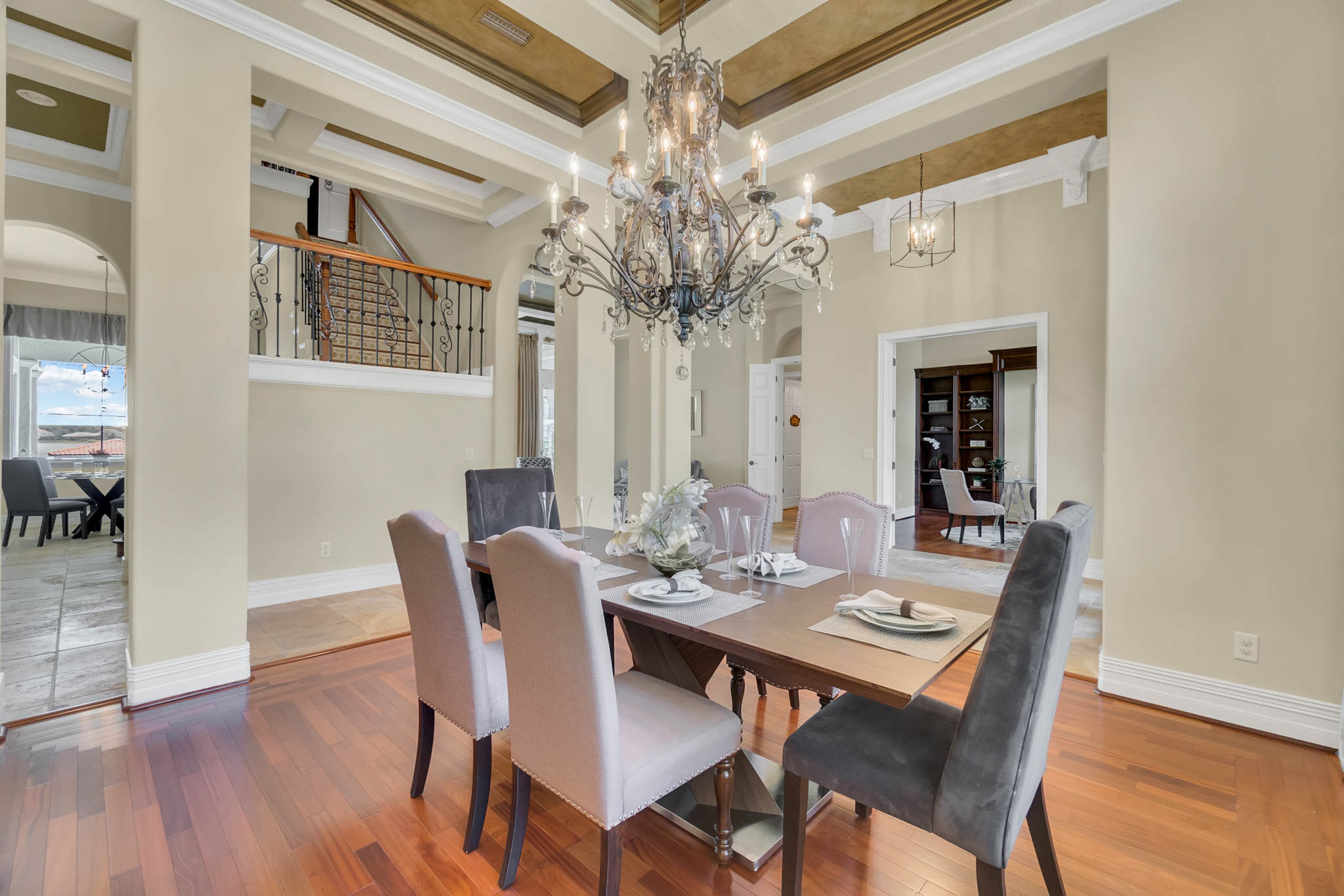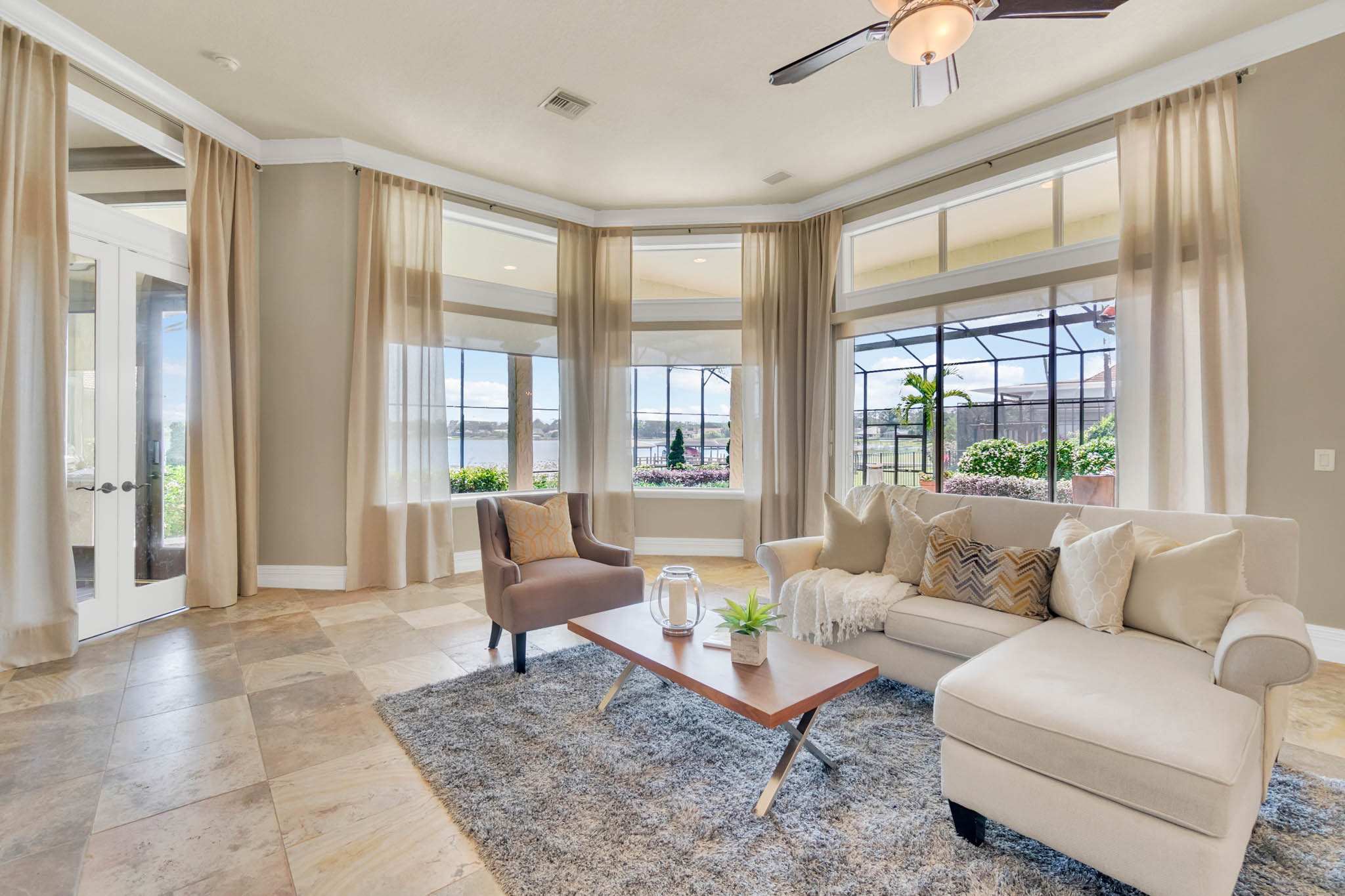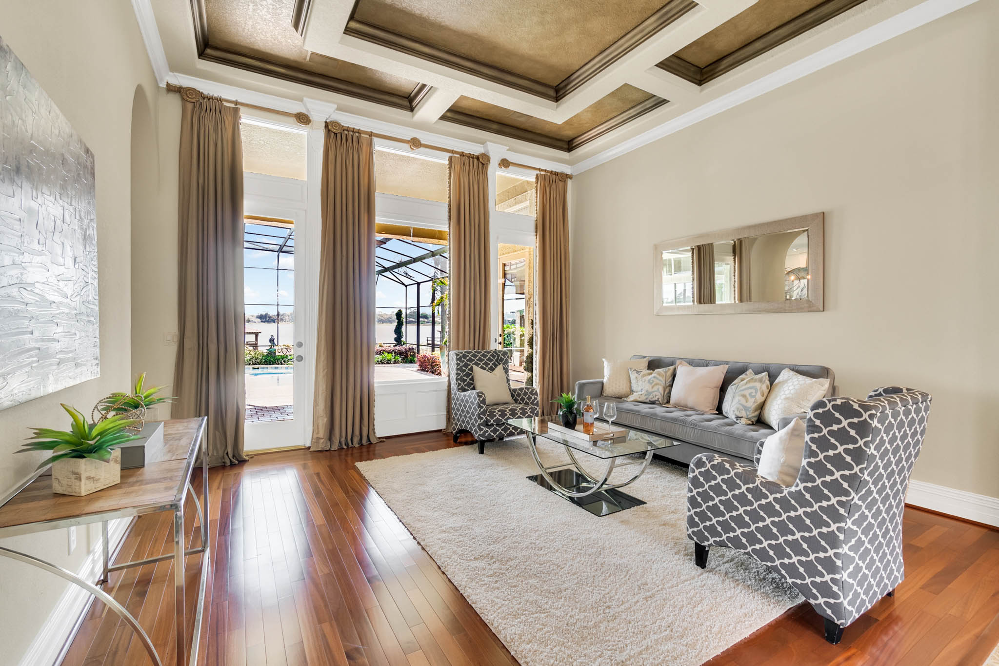 SPECTACULAR LAKEFRONT HOME IN 24 HR. GATED AND GUARDED COMMUNITY. REMODELED with neutral colors. LARGE (27X16) STATE OF THE ART THEATER ROOM COST $150,000. Total Sq. Ft. 8,162 – 6,346 heated sq. ft. 6th bedroom can be INLAW SUITE with separate full bath. Bonus Room / Playroom step down. As you enter, enjoy the *MAGNIFICENT LAKEVIEW, ARCHITECTURAL DESIGNS, LOTS OF DOUBLE MOLDING, NICHES, FIREPLACE, SECURITY SYSTEM, FRONT AND BACK CAMERAS. *EXOTIC WOOD FLOORS, TRAVERTINE FLOORING, Bedroom/Exercise Room with Cork Flooring. EXTRA LARGE MASTER BEDROOM with sitting area and LAKEVIEW. 19x8 Closet with organizer. HUGE MASTER BATH with His and Hers Vanity, granite, jacuzzi, and dressing area. *KITCHEN UPDATED with WIDER QUARTZ COUNTER TOP, Custom BUSBY 42” cabinets, built in double oven and microwave, study or computer area. PARADISE BACK YARD WITH UPDATED LANDSCAPING VARIOUS FLOWERS. LARGE POOL & HEATED SPA (SALT SYSTEM ADDED TO POOL surrounded by COVERED PORCH with Brick Pavers, UPDATED OUTDOOR KITCHEN WITH STAINLESS STEEL GRILL. 3 NEW AIR CONDITIONERS. CENTRAL VAC SYSTEM. 3 Car Side Entry Garage, Brick Paver Circular Drive. DOUBLE SLIP BOAT DOCK WITH MATCHING TILE ROOF. Estates at Phillips Landing – Close to “Restaurant Row,” Trader Joes, Whole Foods, 5-10 min. to Malls and many shops, schools and hospital. 20-25 min. to International Airport, Disney World and EPCOT. Well established Estates at Phillips Landing, Dr. Phillips Area.