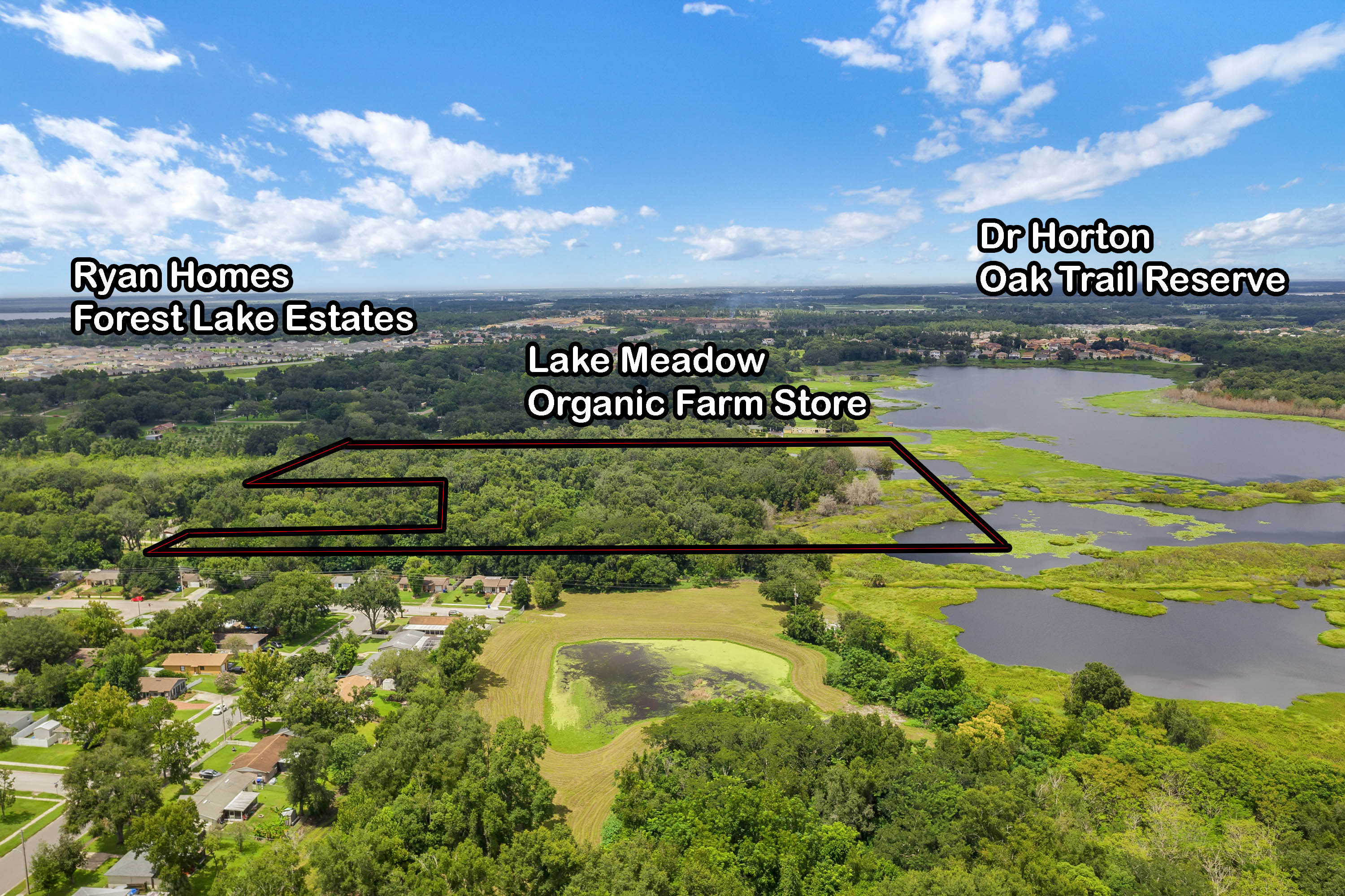 PRIME LAKEFRONT DEVELOPMENT OPPORTUNITY IN RAPIDLY EXPANDING WEST ORANGE COUNTY! Builders take note: 18.53 acres (+/-) direct lake frontage, zoned A-1 with future land use R-1. Plans exist for 5 lots however it may be rezoned for Higher Density Housing with four dwellings per acre with the joint planning agreement between Orange County and the City of Ocoee. 660 feet of direct lake frontage with full Riparian rights-build community or private docks, and boathouses on Lake Meadow a 100 acre lake. MLS G5019626
