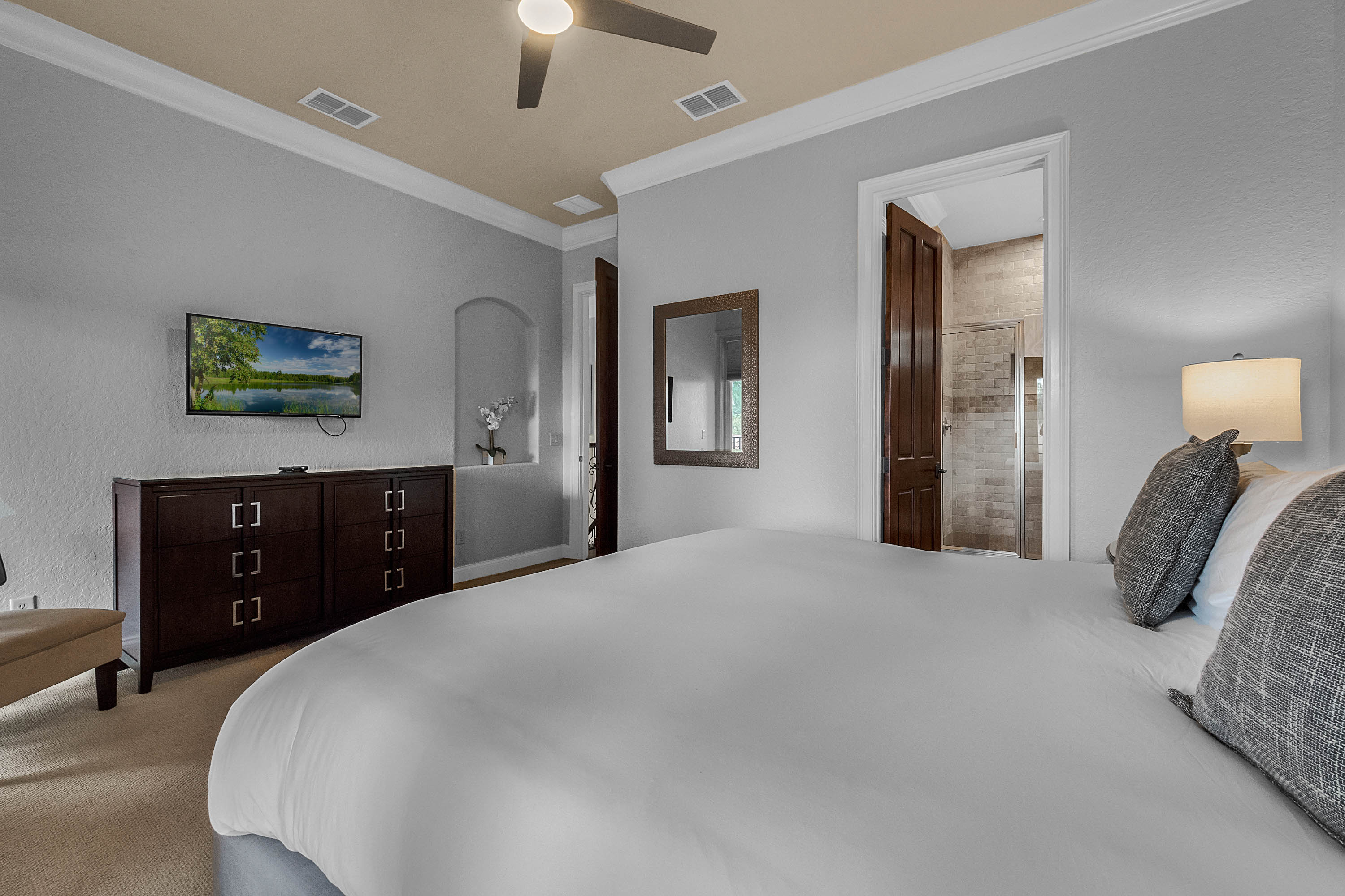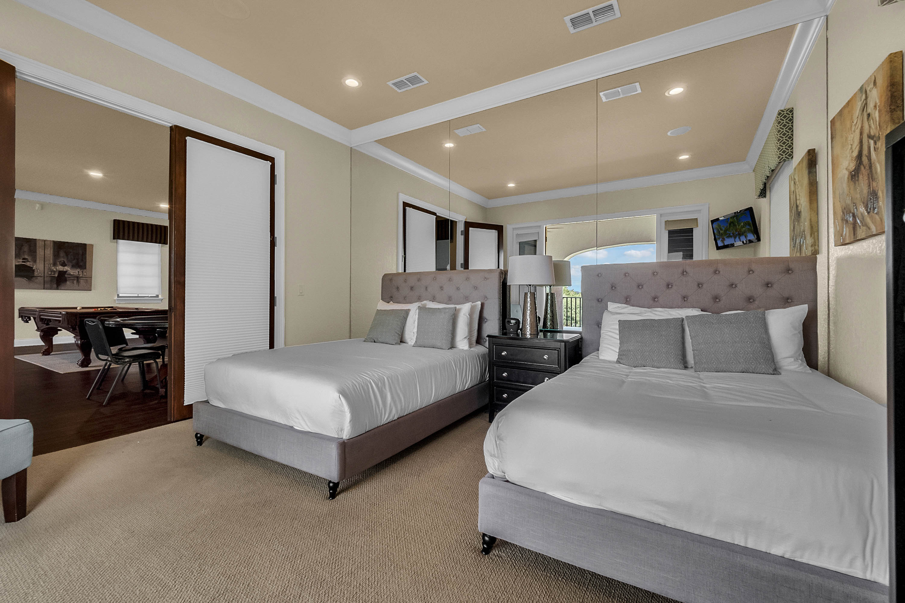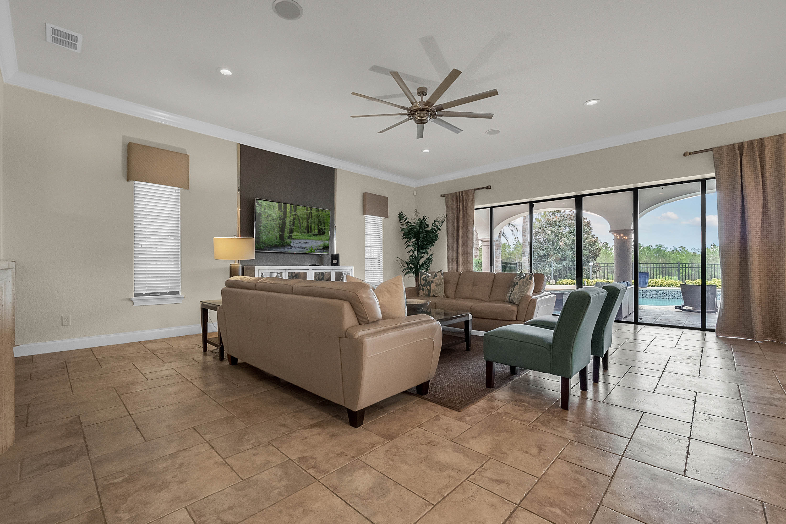 Spectacular custom built Estate Home located in Reunion Resort’s prestigious Legend’s Corner neighborhood. This beautiful home has a desirable open floor plan, high-end finishes and is tastefully decorated throughout 5,400 square feet of living space! The first floor has a large master bedroom with gorgeous ensuite master bathroom, as well as a spacious dining room with attached butler’s pantry, which leads into a stunning living room and an oversized gourmet kitchen. Sliding glass doors open to a beautiful rear patio area with a summer kitchen, outdoor entertainment space, and private pool; all overlooking the 13th fairway of the Jack Nicklaus designed golf course. Located on the 2nd floor is a theatre room, private work station, and a gathering room equipped with pool & poker tables, gaming consoles, and mini bar. Upstairs also has additional bedrooms; including a “hand-crafted” Disney themed bunk room! The 2nd floor extended balcony is a perfect place to relax and take in a bird’s eye view of the scenic landscape below. This home has something for everyone, with indoor & outdoor space to entertain the whole family! Currently an “ELITE LEVEL” incoming producing home in Jeeve’s short-term rental program. Whether you are looking for your dream home or a fantastic vacation rental, this home has it all! Reunion Resort is close to all major theme park and Only 6 MILES away from Walt Disney World. The community is home to 3 Championship Signature Golf Courses, a variety of highly rated restaurant choices, several community polls, and a multi-million dollar waterpark with lazy river & water slide. Don’t miss out on this amazing opportunity, reach out today to book your tour!