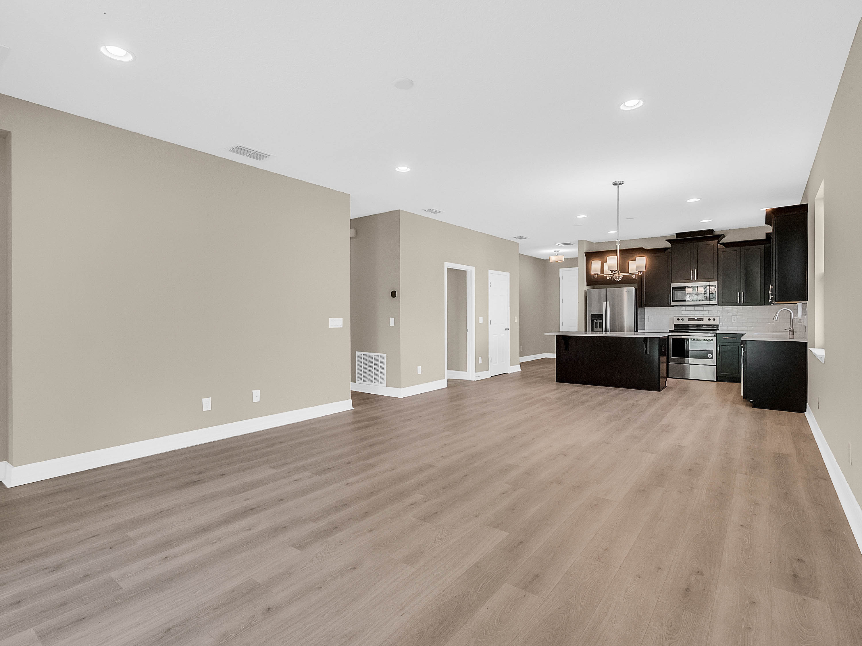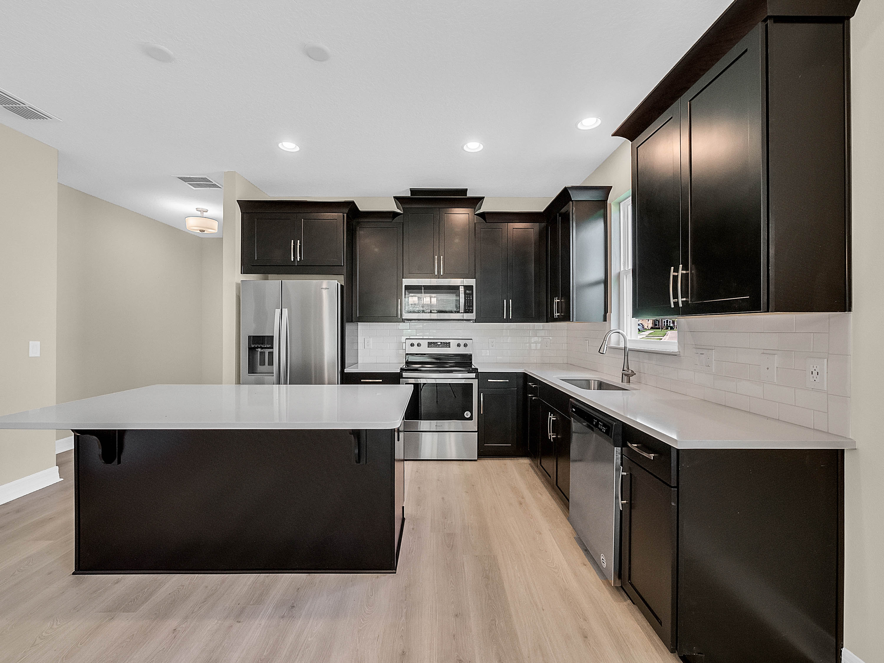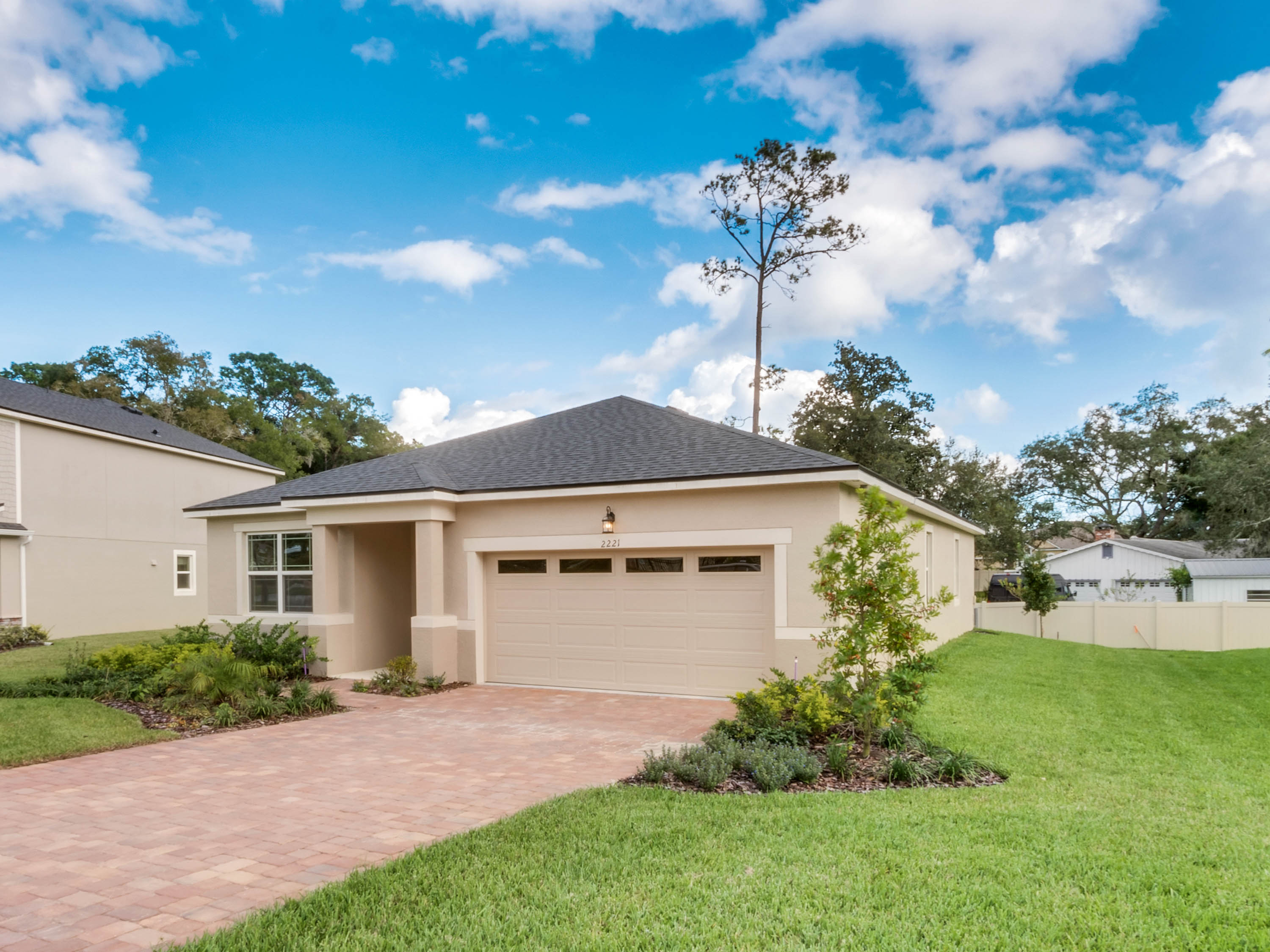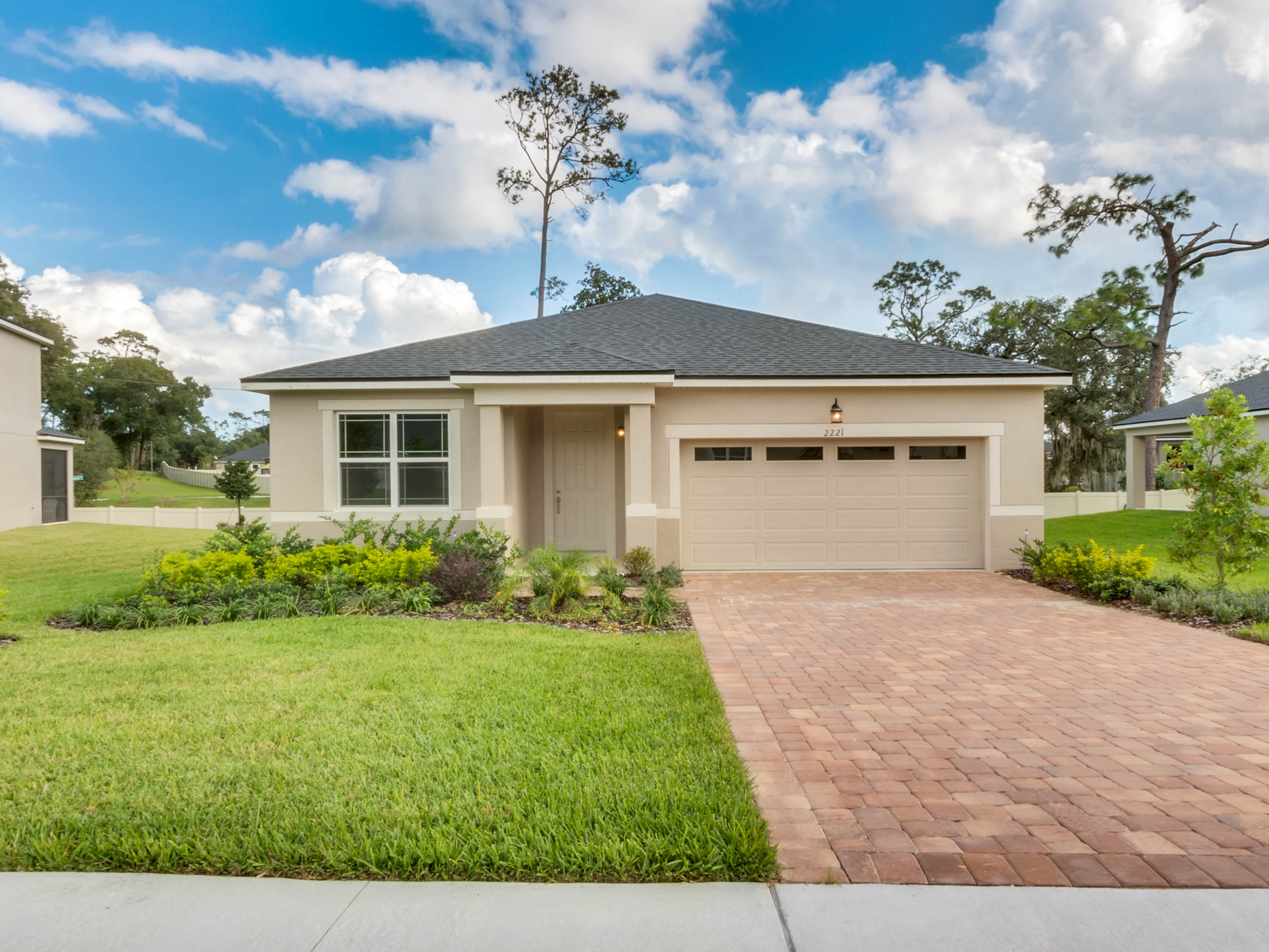 DELAND: NEW BUILD | BENTLEY GREEN SUBDIVISION | BONUS ROOM | COVERED PORCH: Don't miss your chance of owning this Amberly model home with 3 bedrooms, 2 bathrooms and bonus room. This open floor plan has 1,735 sq ft. The bonus room/Den/Office features french doors and tile floors. This space also makes a great playroom. The Kitchen/Family room combo is large and has plenty of room for your living and dining room furniture. Sliding doors lead to the covered porch for easy indoor and outdoor living. The kitchen will WOW you! Dark Cabinets, quartz counter tops, stainless steel appliances and a large center island. The Master bedroom features a large walk in close, tray ceilings and master bathroom with his and her sinks and walk in shower. Additional bedrooms are spacious and share a guest bathroom. You will love the covered porch private backyard views and plenty of space for your outdoor living furniture and grill. Inside laundry and attached 2 car garage complete this home. Amenities include a community pool, park and playground. This home is a MUST SEE!