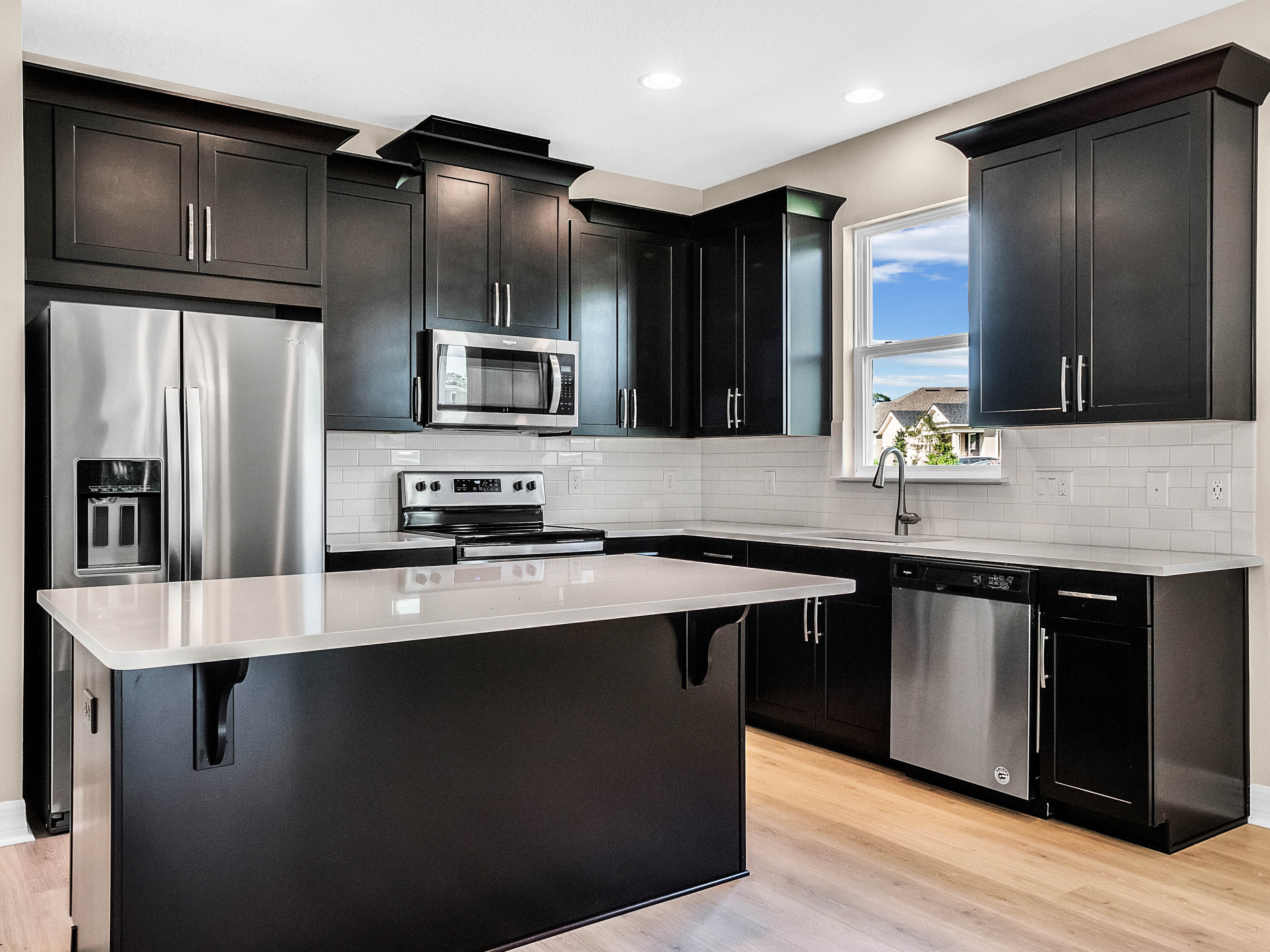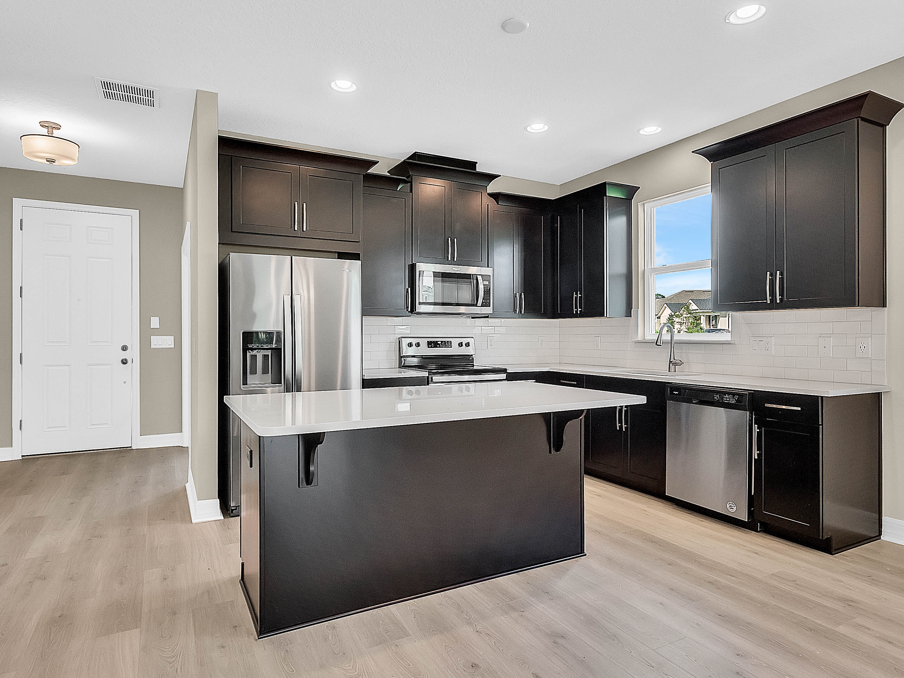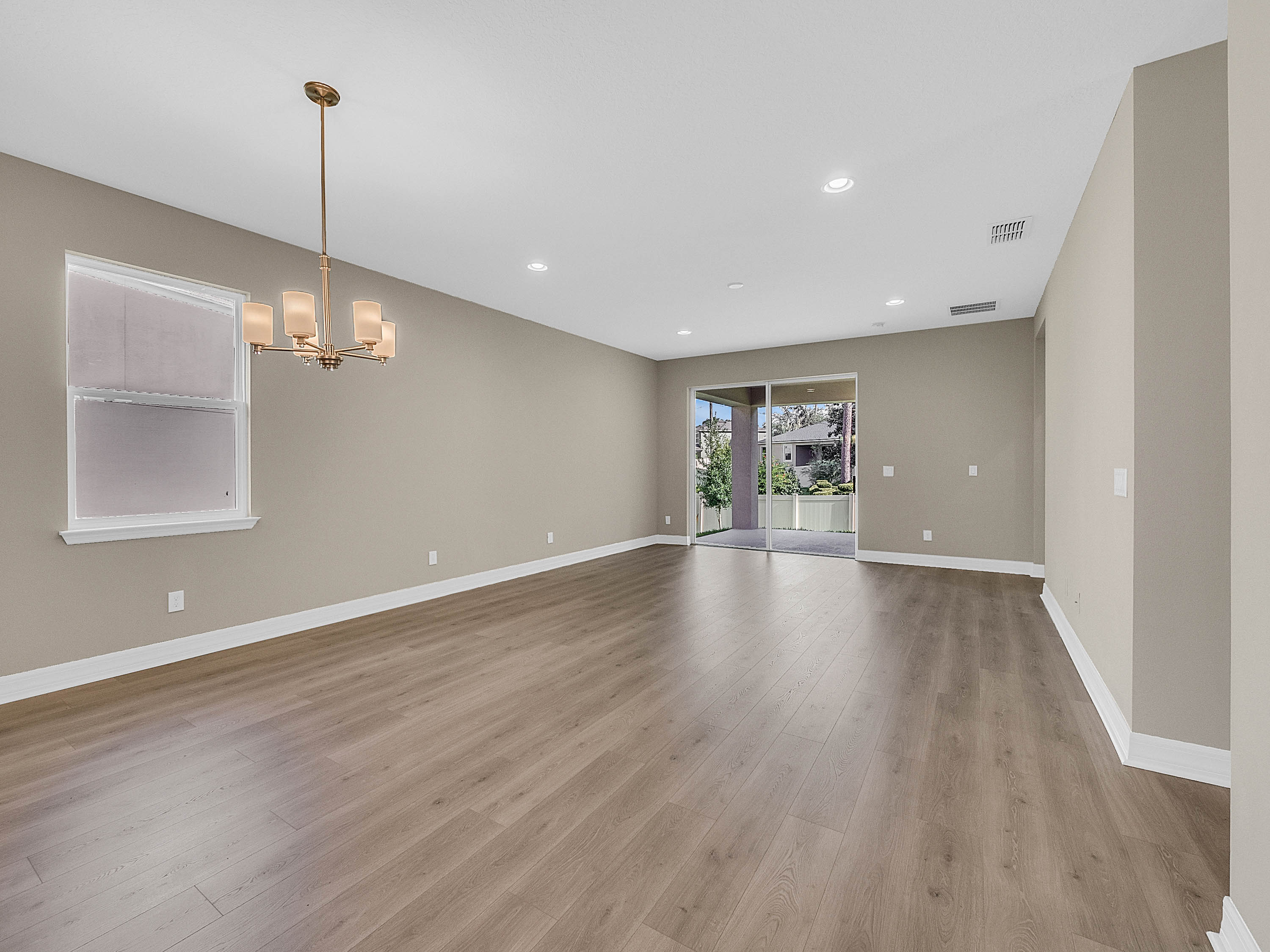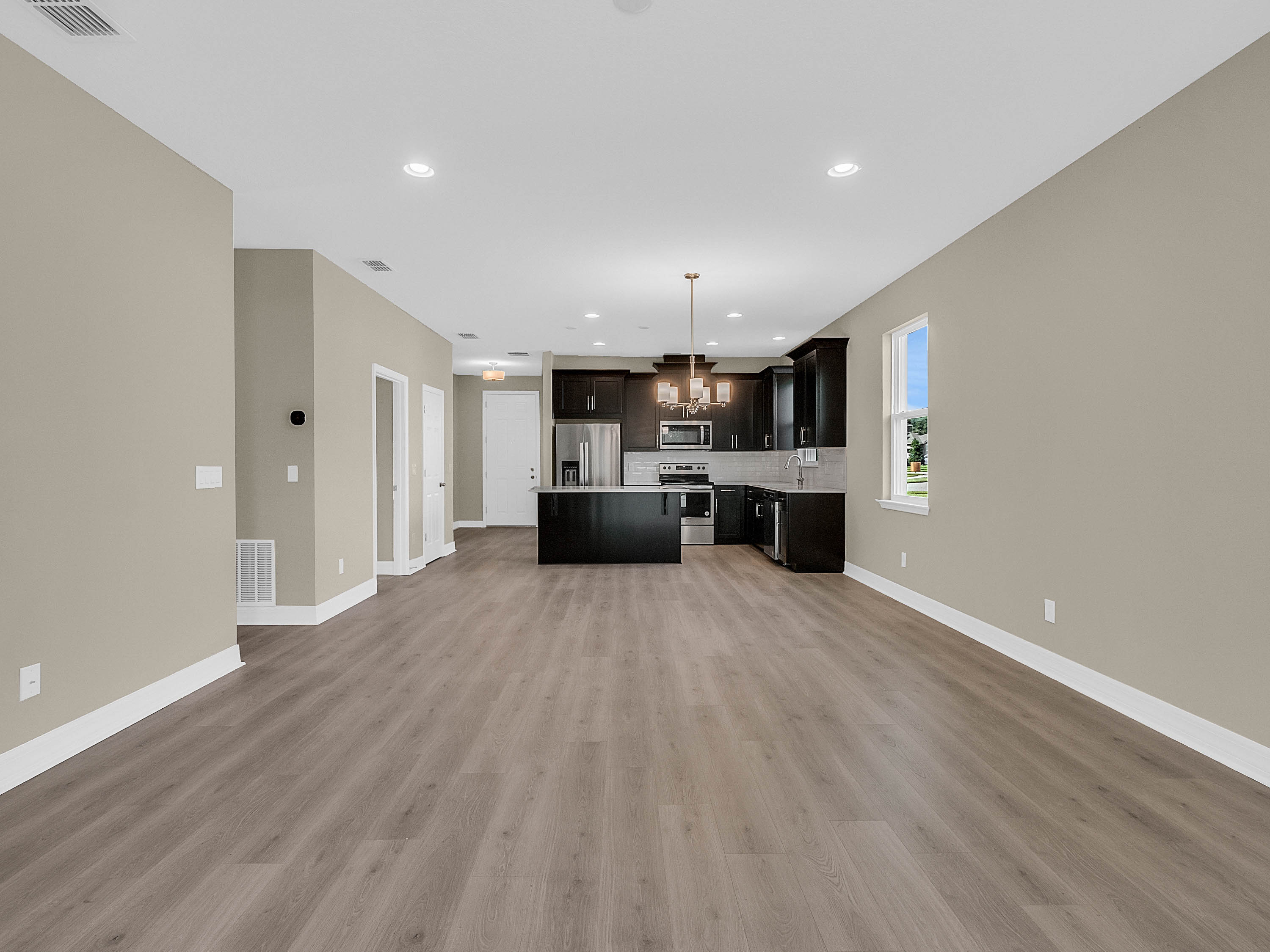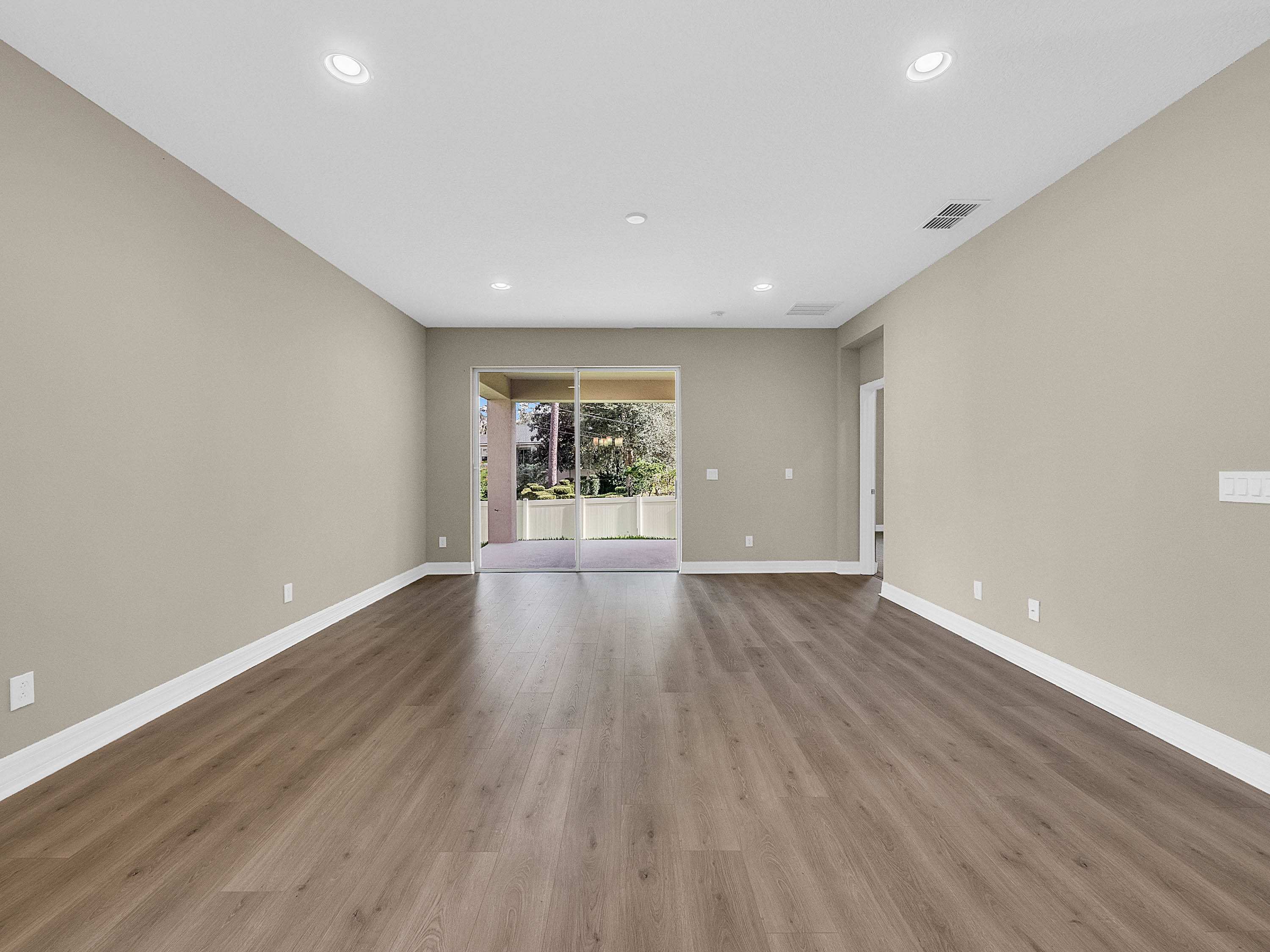DELAND: NEW BUILD | BENTLEY GREEN SUBDIVISION | BONUS ROOM | COVERED PORCH: Don't miss your chance of owning this Amberly model home with 3 bedrooms, 2 bathrooms and bonus room. This open floor plan has 1,735 sq ft. The bonus room/Den/Office features french doors and tile floors. This space also makes a great playroom. The Kitchen/Family room combo is large and has plenty of room for your living and dining room furniture. Sliding doors lead to the covered porch for easy indoor and outdoor living. The kitchen will WOW you! Dark Cabinets, quartz counter tops, stainless steel appliances and a large center island. The Master bedroom features a large walk in close, tray ceilings and master bathroom with his and her sinks and walk in shower. Additional bedrooms are spacious and share a guest bathroom. You will love the covered porch private backyard views and plenty of space for your outdoor living furniture and grill. Inside laundry and attached 2 car garage complete this home. Amenities include a community pool, park and playground. This home is a MUST SEE!