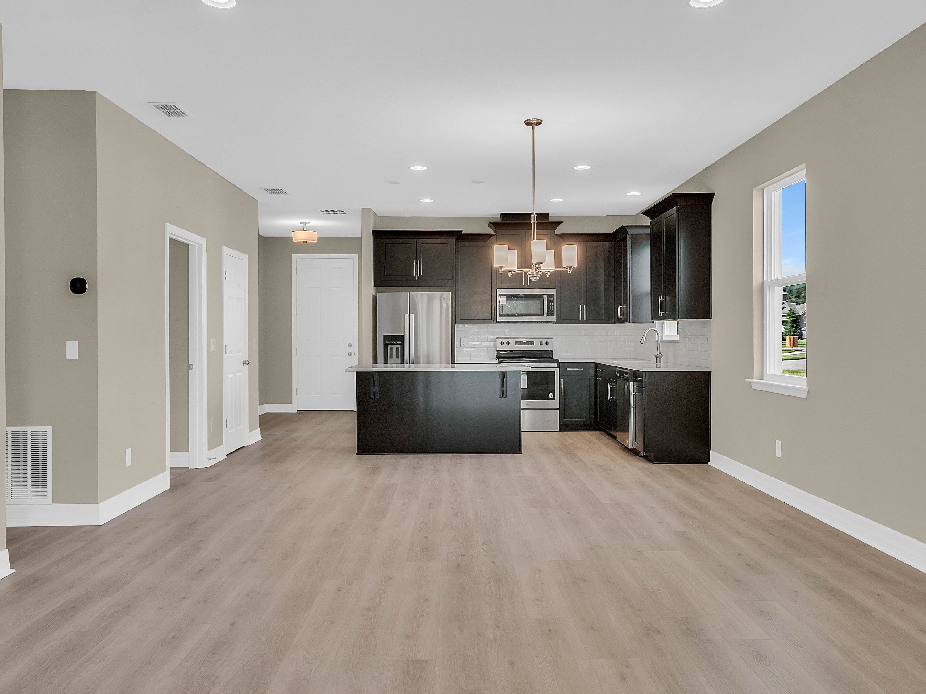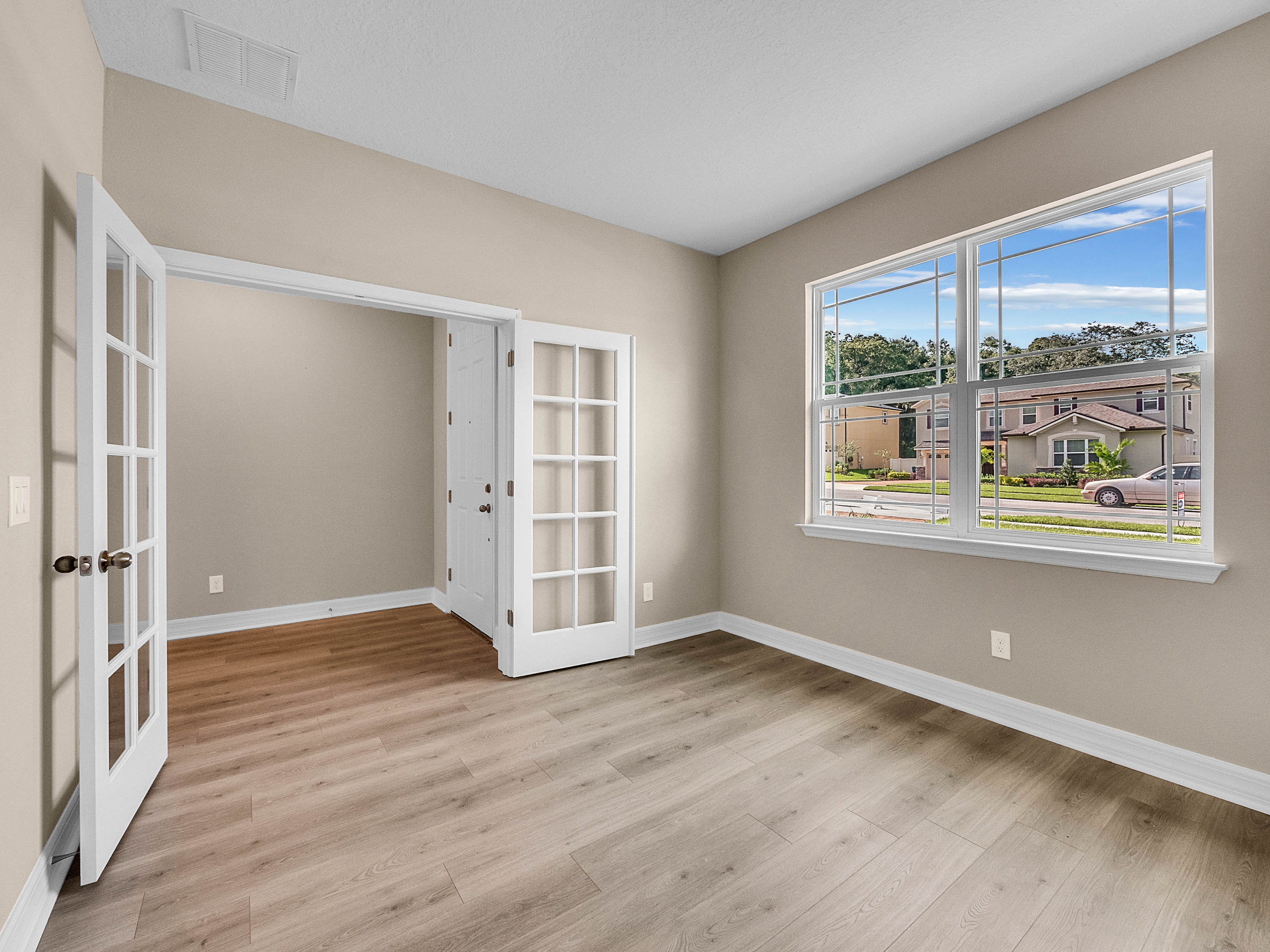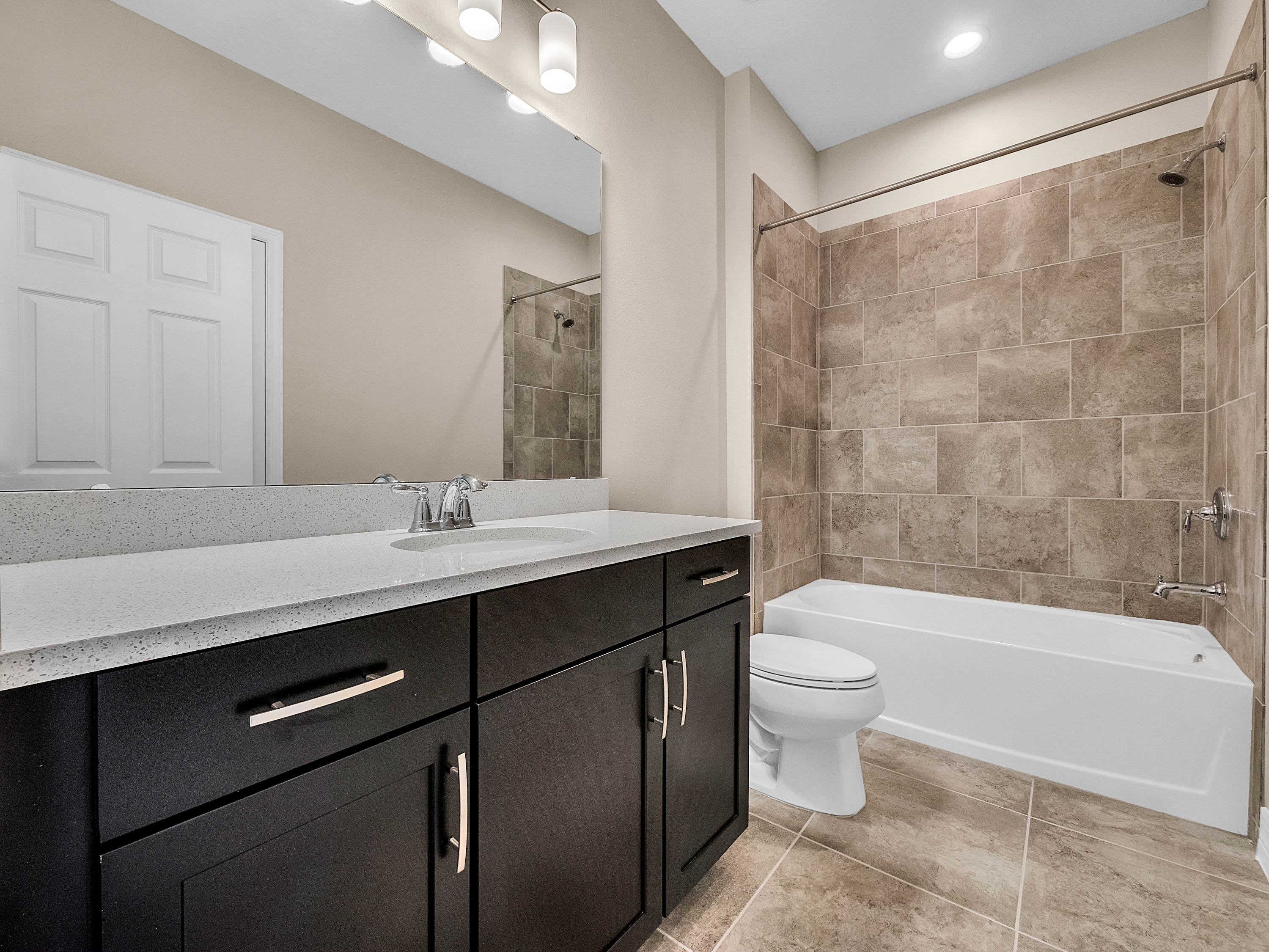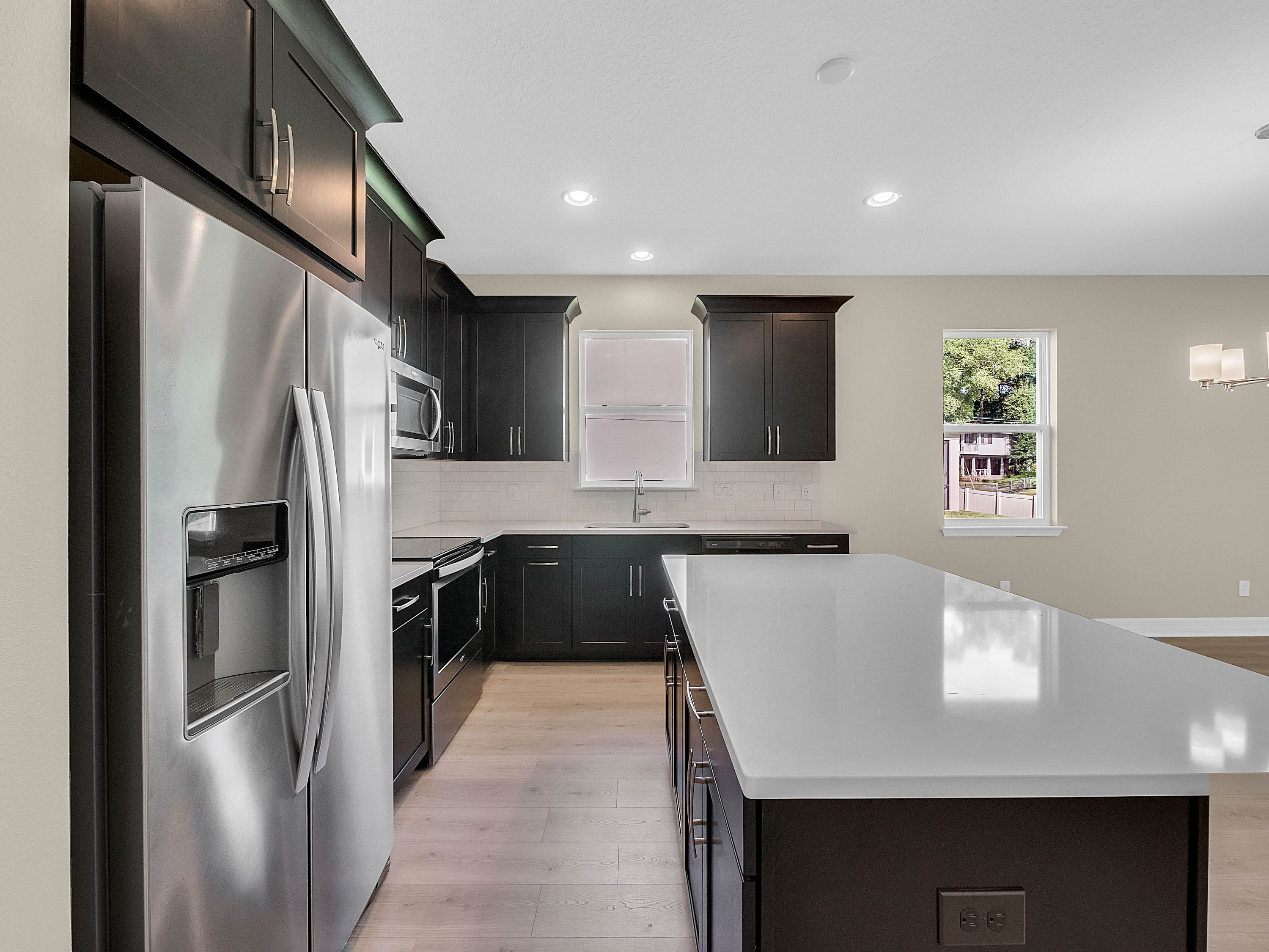 DELAND: NEW BUILD | BENTLEY GREEN SUBDIVISION | BONUS ROOM | COVERED PORCH: Don't miss your chance of owning this Amberly model home with 3 bedrooms, 2 bathrooms and bonus room. This open floor plan has 1,735 sq ft. The bonus room/Den/Office features french doors and tile floors. This space also makes a great playroom. The Kitchen/Family room combo is large and has plenty of room for your living and dining room furniture. Sliding doors lead to the covered porch for easy indoor and outdoor living. The kitchen will WOW you! Dark Cabinets, quartz counter tops, stainless steel appliances and a large center island. The Master bedroom features a large walk in close, tray ceilings and master bathroom with his and her sinks and walk in shower. Additional bedrooms are spacious and share a guest bathroom. You will love the covered porch private backyard views and plenty of space for your outdoor living furniture and grill. Inside laundry and attached 2 car garage complete this home. Amenities include a community pool, park and playground. This home is a MUST SEE!