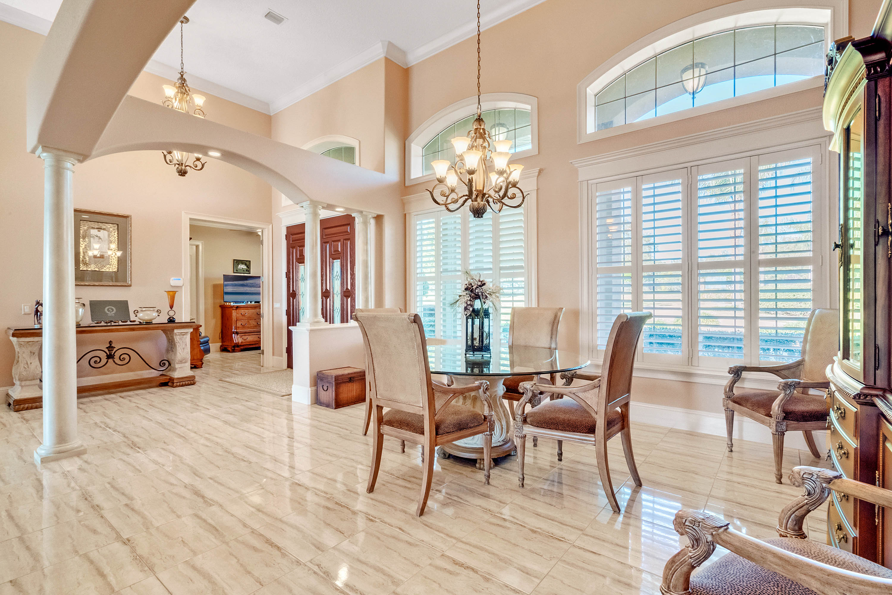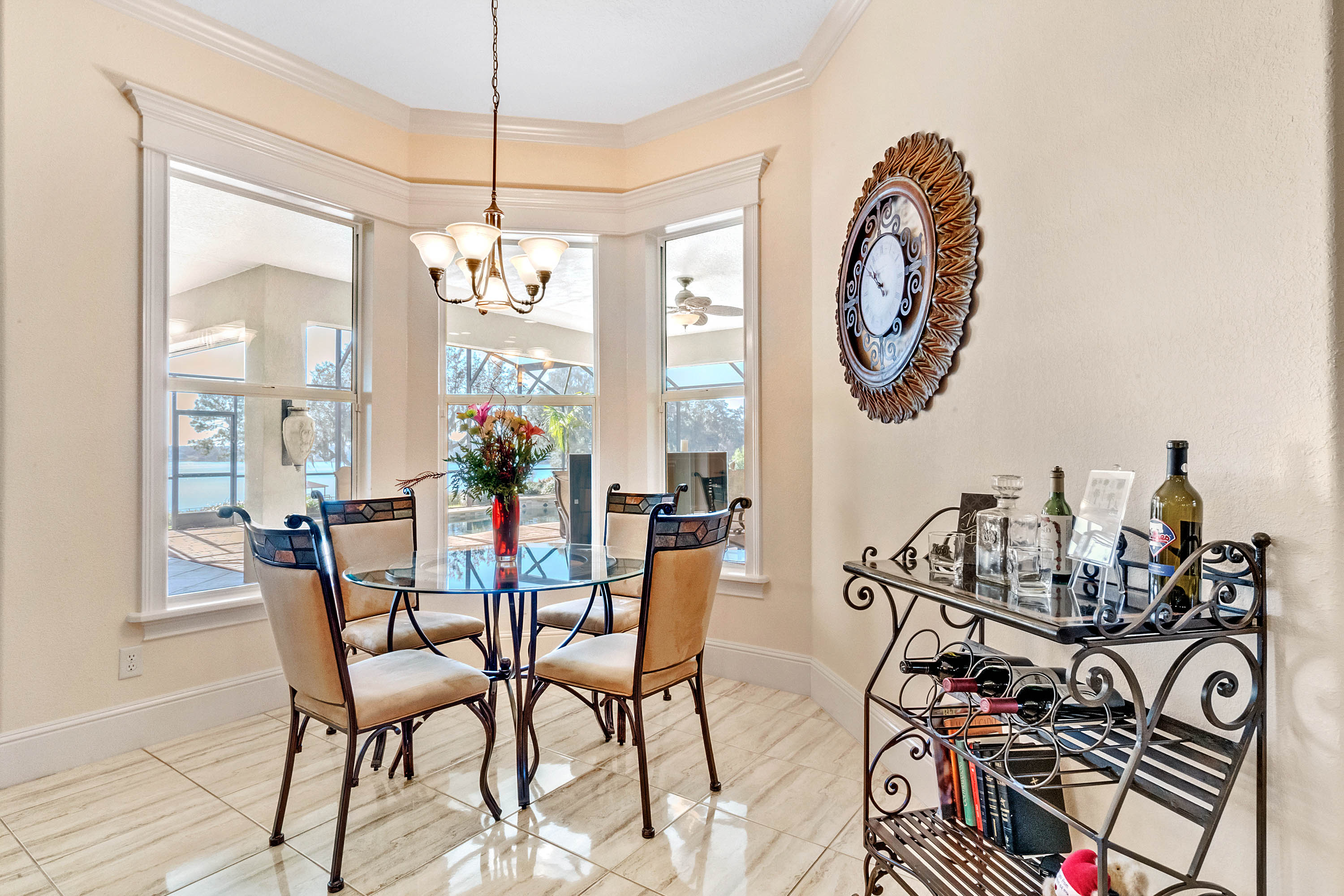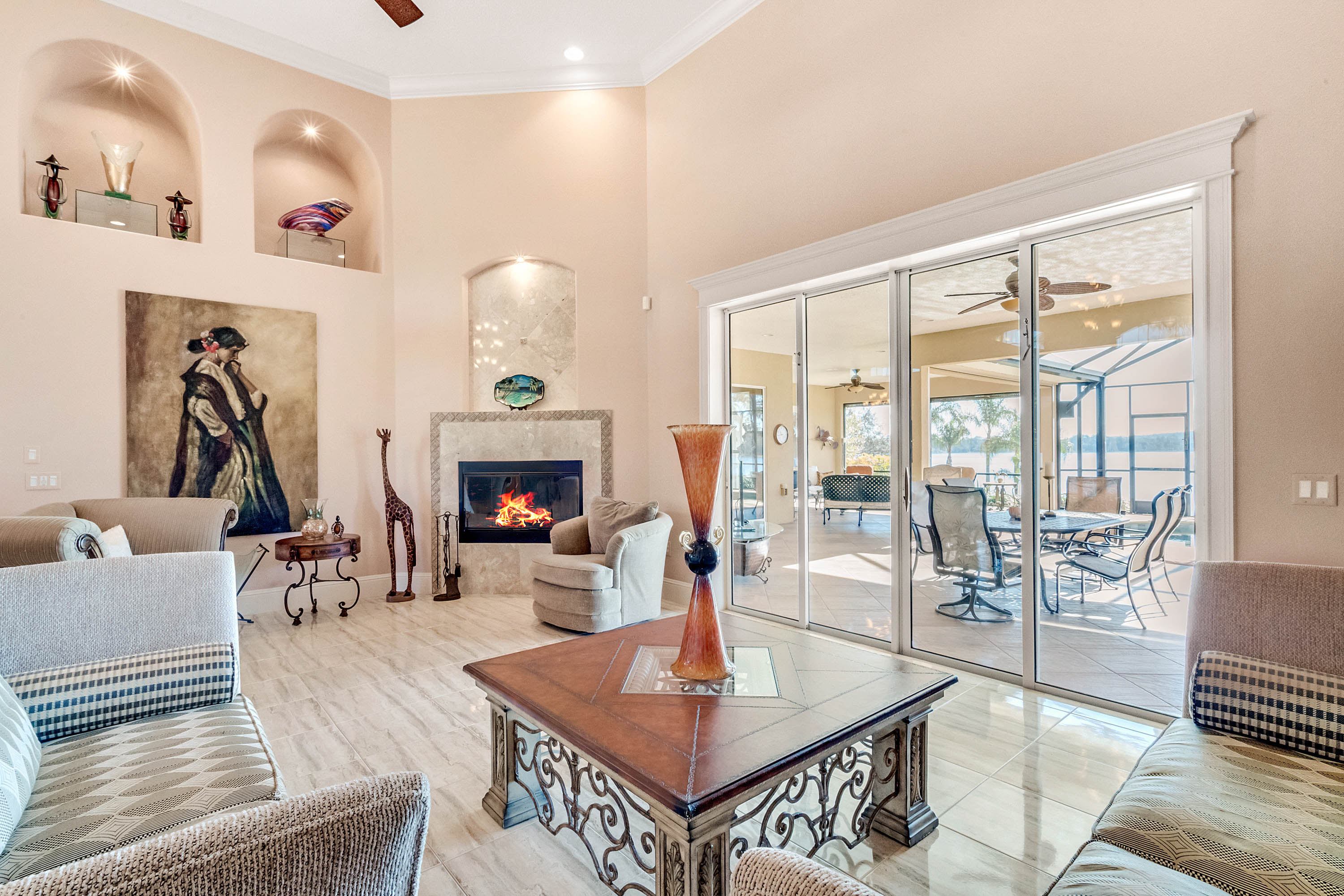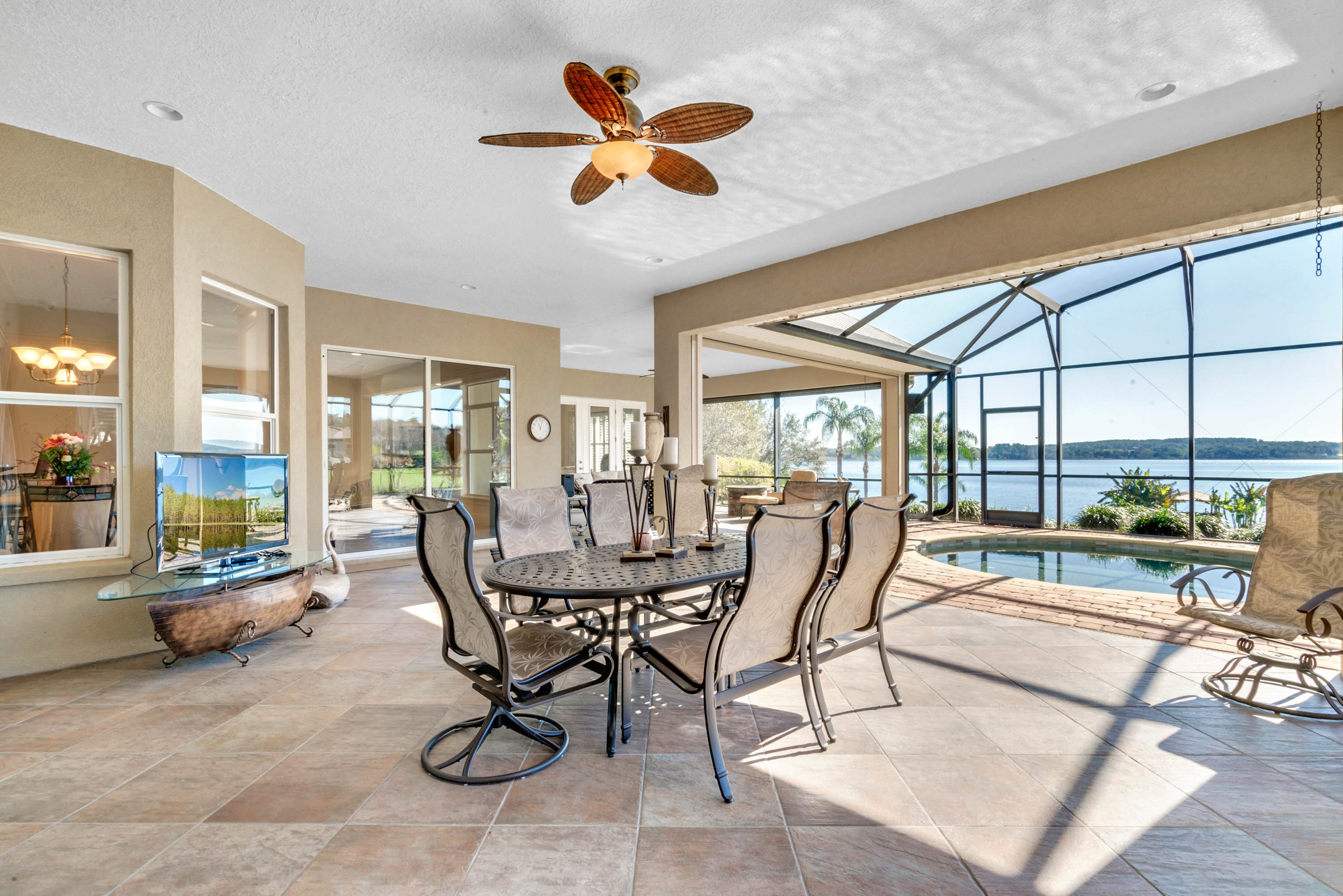 SOLD - Truly a Stunning Lakefront Masterpiece which proudly boasts nearly 4,500 sqft of beautifully appointed living area with 4 bedrooms (including 2 guest ensuites), 4.5 baths, separate living room, family room, bonus room, study-office, private security gate, over 3.75 acres of meticulously landscaped grounds, direct lake frontage on Lake Dalhousie with private dock & gazebo, oversized side entry garage (up to 4 vehicles), dramatic paver entrance & circular drive, as well screened paver swimming pool & lanai. Constructed with uncompromising standards for quality, attention to detail, and unparalleled aesthetic vision to maximize views of the lakefront panoramas for this premier and privileged setting. Boasting every imaginable custom designer appointment and inclusion, this exemplary waterfront offering features beautiful porcelain tile throughout all the main living areas; upstairs guest ensuite with solid wood floors; a Chef's Dream kitchen with granite counters, granite island, beautiful wood cabinetry and state-of-the-art built-in stainless appliances; downstairs master suite with views of the lake; bonus/game room; private dock and gazebo; remote controlled hurricane screening on lakeside windows; custom plantation shutters; and a seemingly infinite inventory of additional designer appointments, fixtures, niches, and decorative moldings. Conveniently located just minutes from downtown Mount Dora and Eustis shopping & dining. An absolute must see for any interested lakefront home buyer wanting quality, luxury, convenience, and a premier waterfront setting!!
