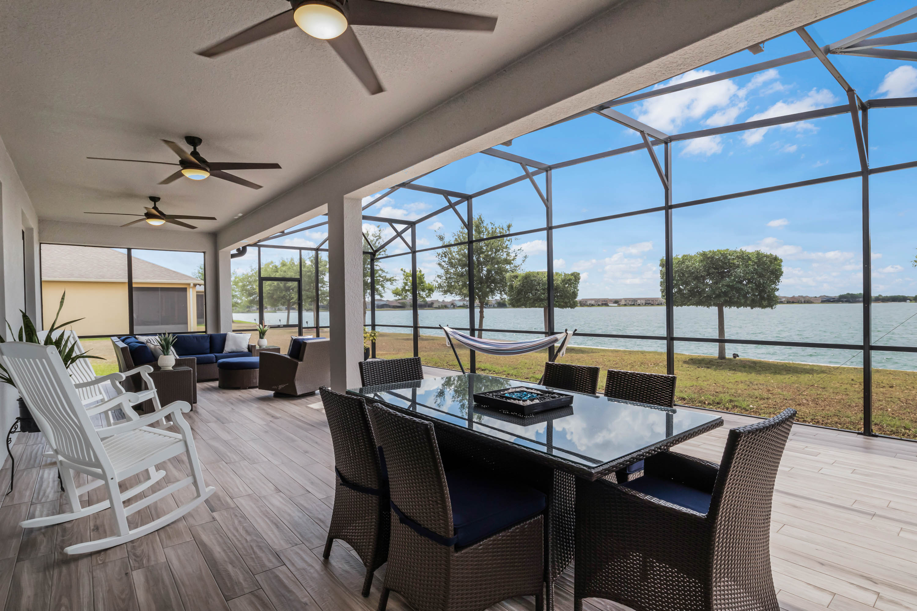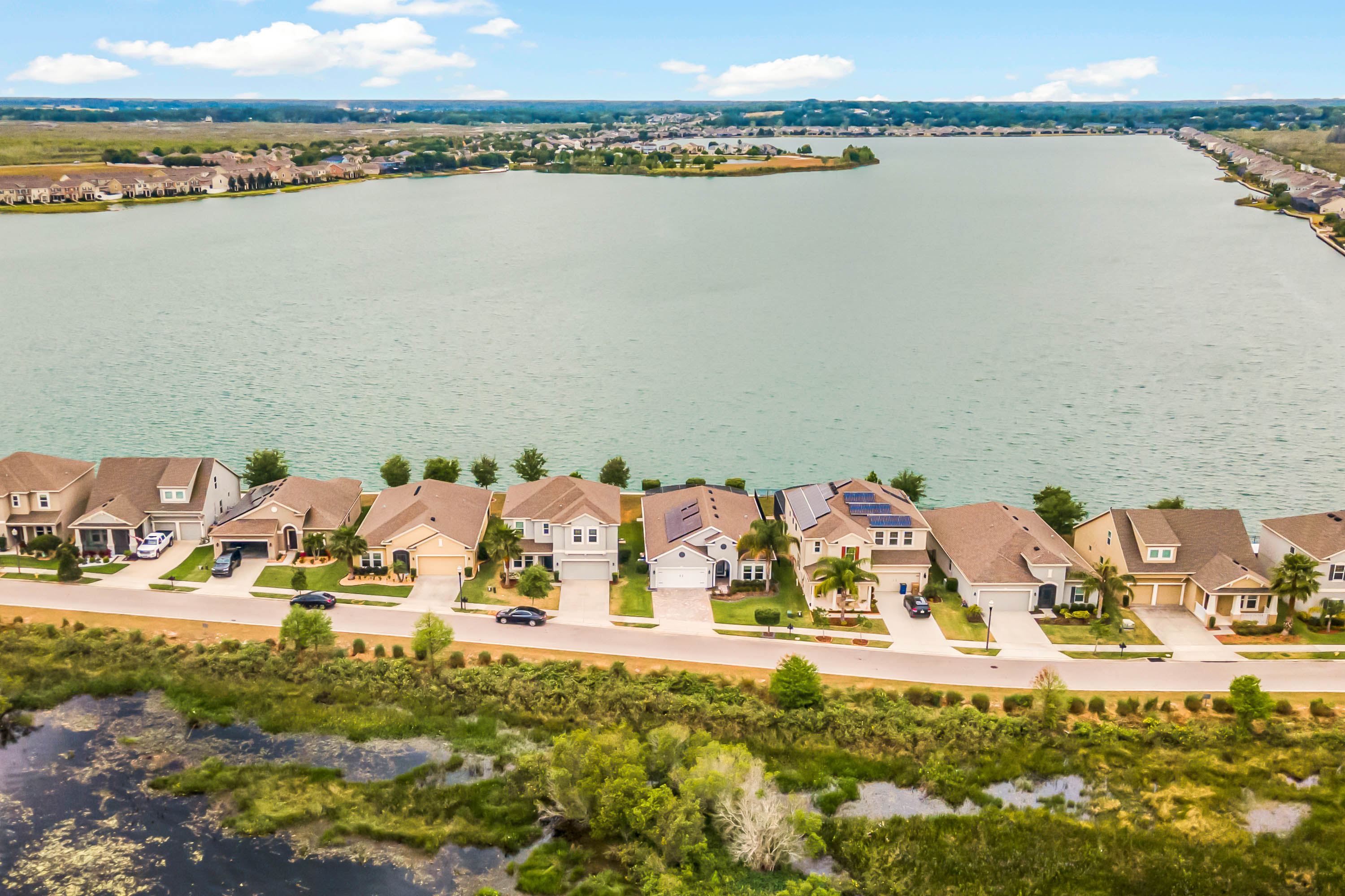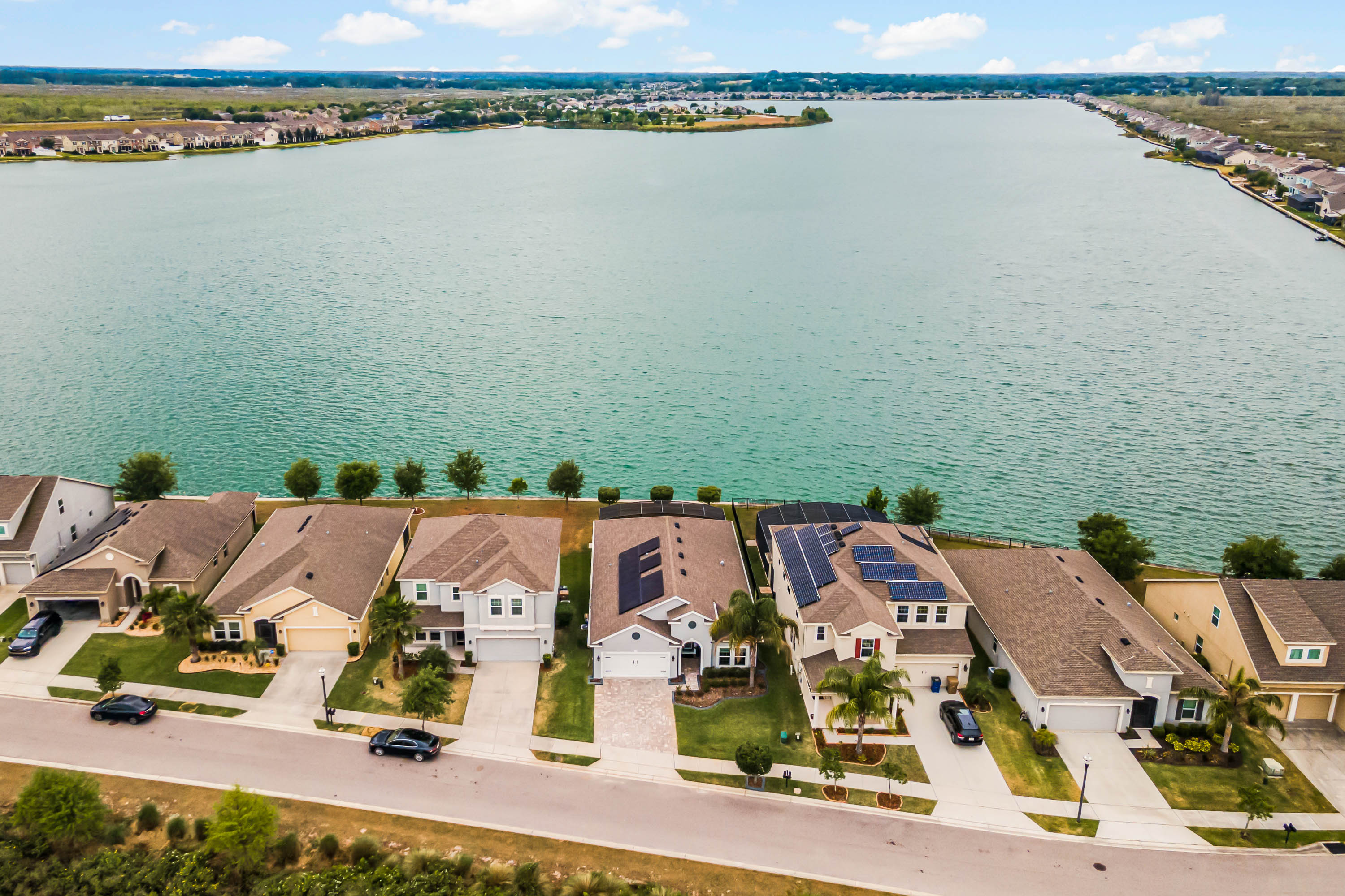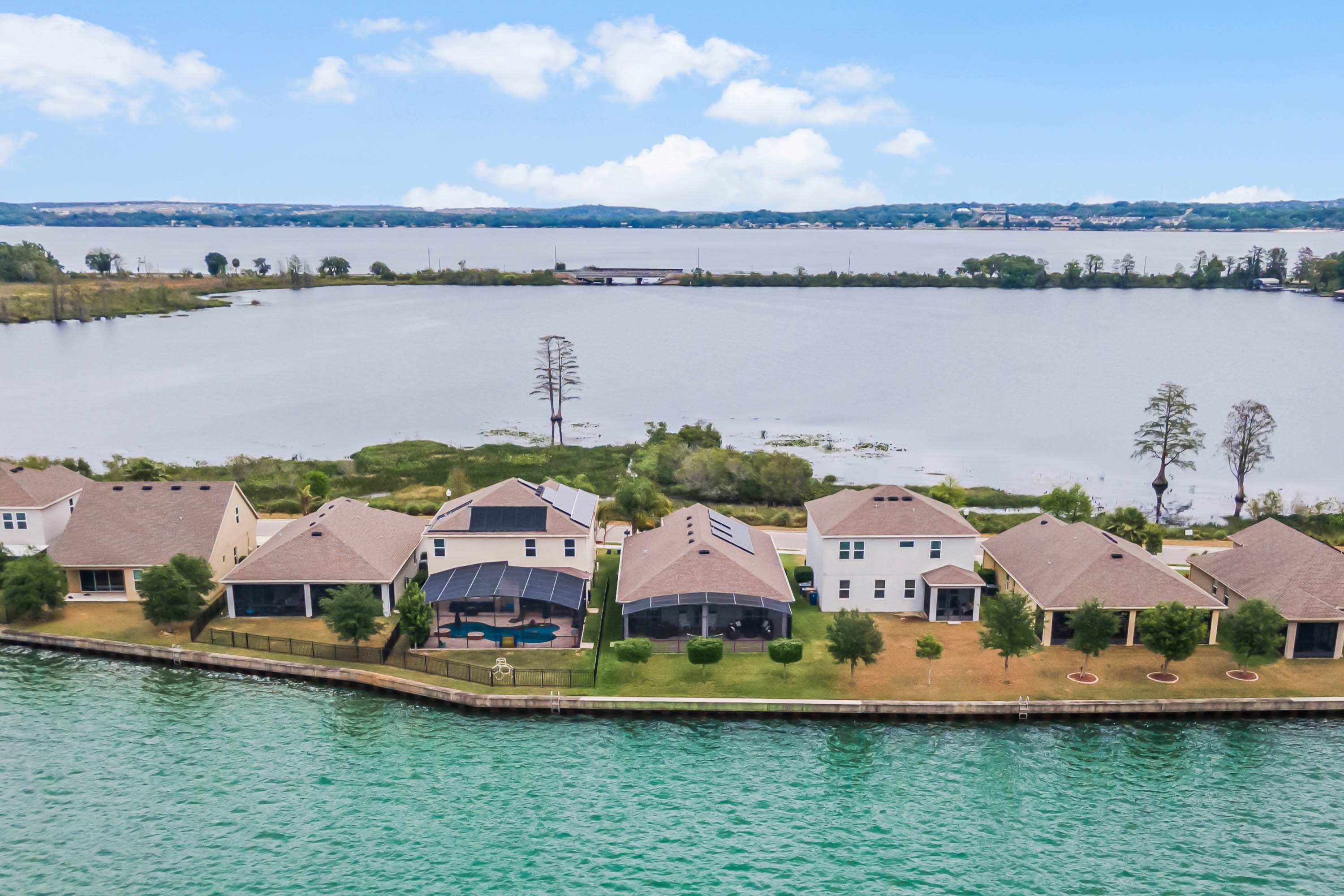 Gorgeous Immaculate Lake Front home located in the Great community of Waterside Pointe. With amazing sunsets and lake views in the back and water views in the front of the house. This home has water views from the front yard of the canal leading to The Clermont Chain of lakes and waterfront views with amazing sunsets in the back yard . You don't need to ask for anything else. This house has upgraded cabinets, wood looking tile throughout the entire home. Home was extended 4 ft with builder, crown molding throughout the entire home, upgraded 5" baseboards, Ceiling Fans a . An Amazing 22x40 screened tiled porch. Top of the line appliances, Water Treatment system, upgraded pavers on the Drive Way. Waterside Pointe offers a clubhouse, Resort-Style Pool with Waterslide, shaded cabana, fitness center, and athletic courts.