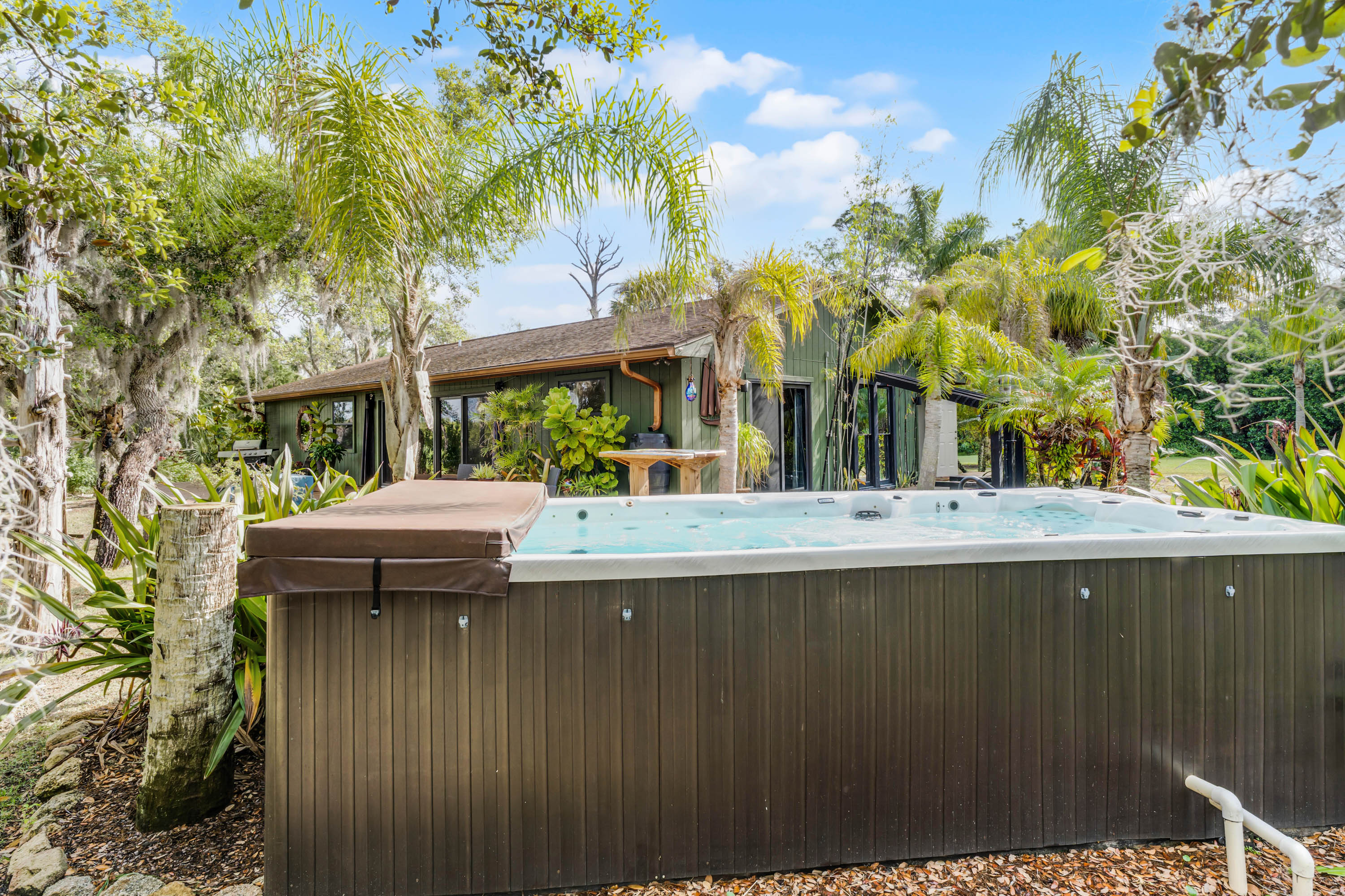 Welcome to your private paradise! Nestled in the serene landscapes of New Smyrna Beach, this 2-bedroom, 2-bathroomhome offers approximately 1,500 square feet of comfortable living space on an expansive 12.8-acre lot. Surrounded by lush greenery and swaying palm trees, this home is perfect for those seeking a tranquil retreat with a touch of tropical charm. Step outside into a picturesque courtyard-style front yard, where a bamboo-lined entryway and mature tropical landscaping create a stunning first impression. Inside, the home boasts a warm and inviting ambiance, with large windows bringing in natural light and an effortless blend of indoor-outdoor living. This home also includes a barn with a half bath, offering endless possibilities for a workshop, studio, or guest house conversion. With zoning that allows horses, you’ll have plenty of space to embrace an equestrian lifestyle while still being close to shopping, dining, and the vibrant energy of New Smyrna Beach. Whether you choose to finish the remodel and make this home your own or take advantage of the acreage to build your dream estate, the opportunities are endless. Enjoy breathtaking sunsets over the marshland, abundant privacy, and the beauty of Florida’s natural landscape—all while being just minutes from town. Don’t miss the chance to own this unique slice of paradise!